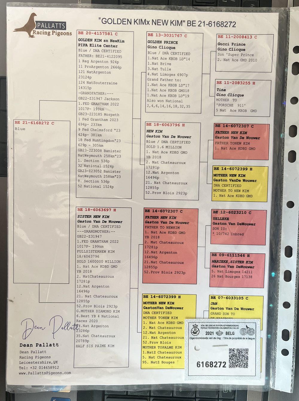 - 当前查看拍卖鸽:迪恩.帕拉特--新金姆直孙272 雄