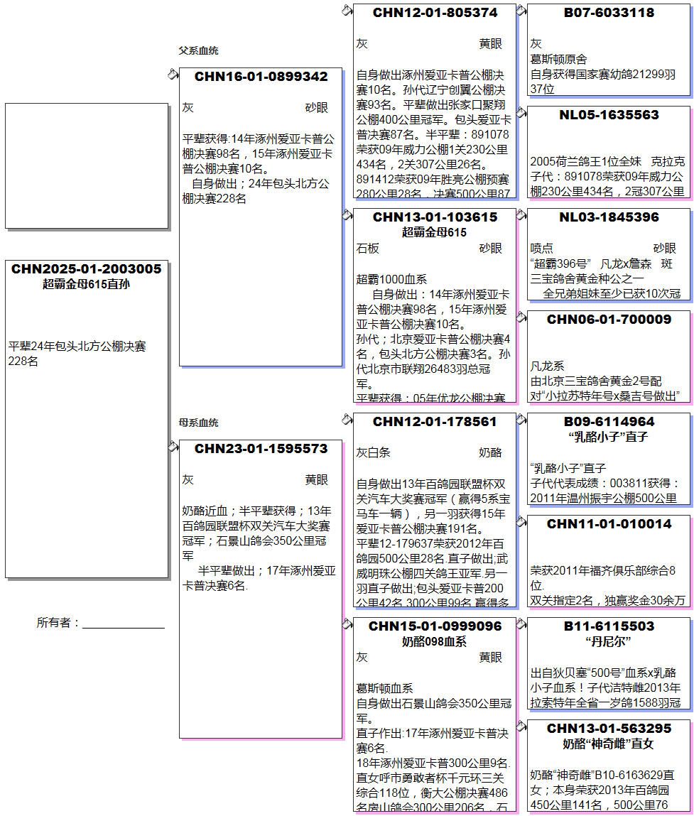 - 当前查看拍卖鸽:14.超霸金母615孙代.2003005