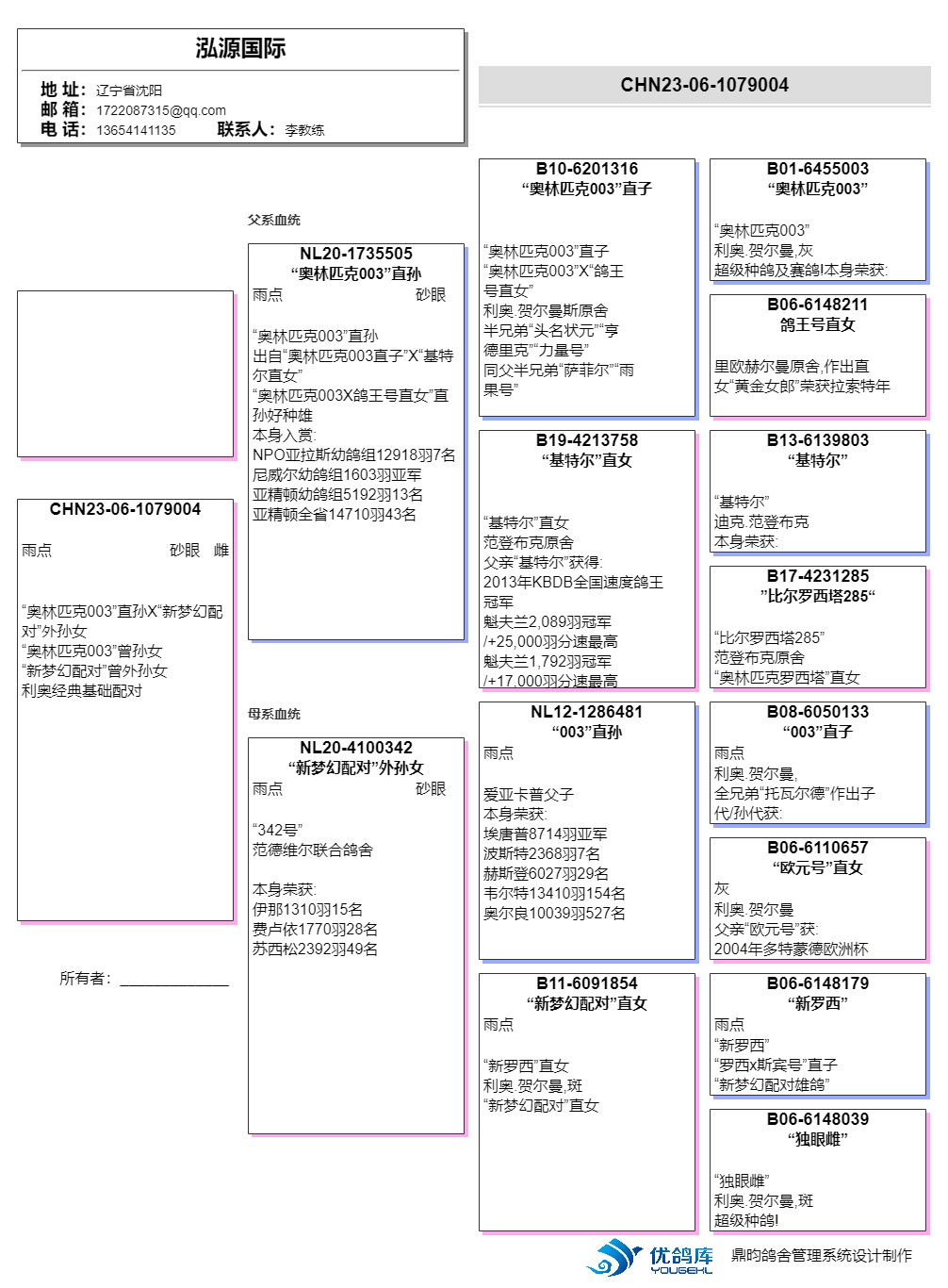 | 1649382 | 多羽前十母亲 利奥003直孙女 | ¥200元 | 1次 |