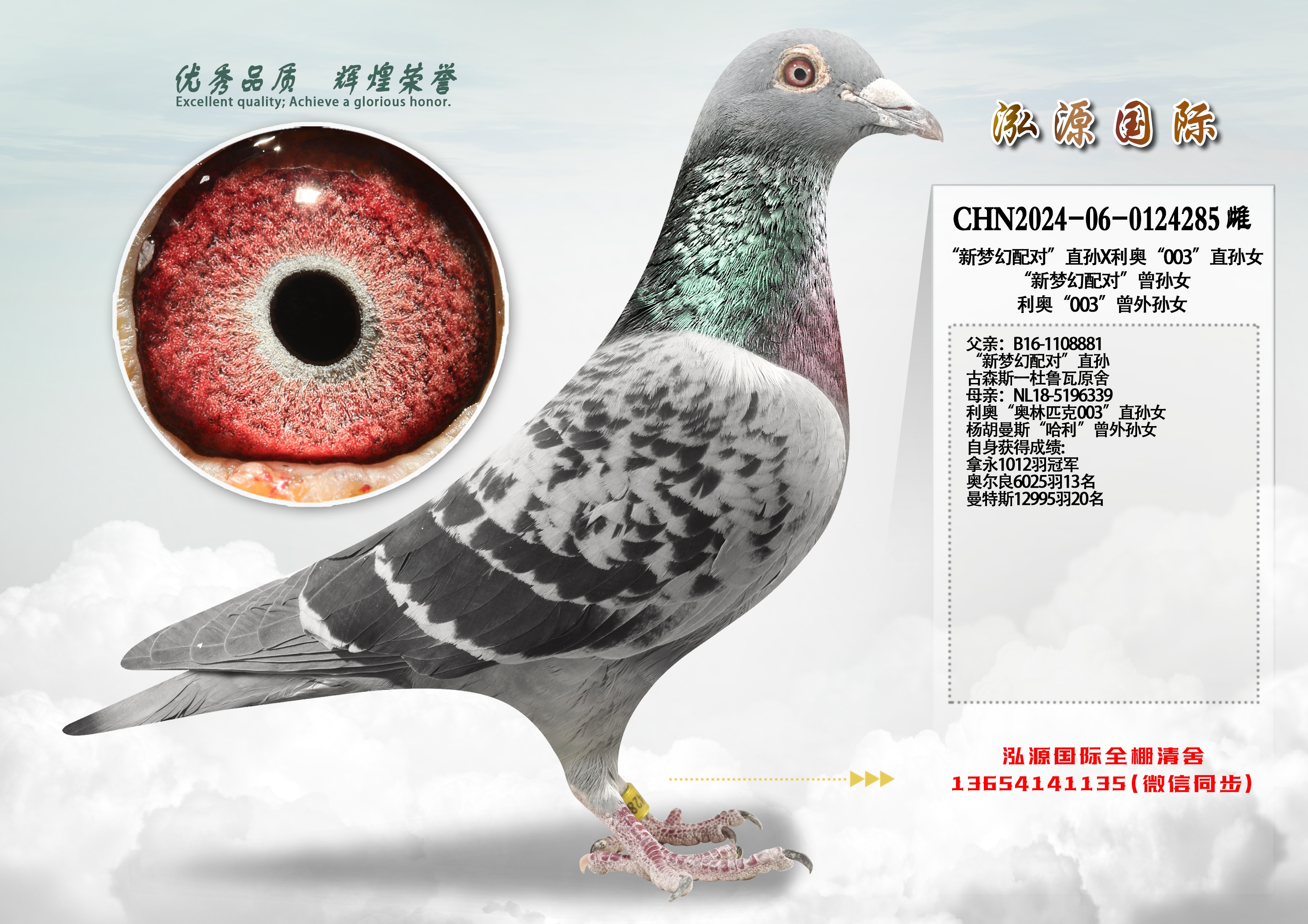 | 1649384 | 千公里5名,公棚鸽王 母亲 盖比鲁迪直孙女 | ¥200元 | 1次 |