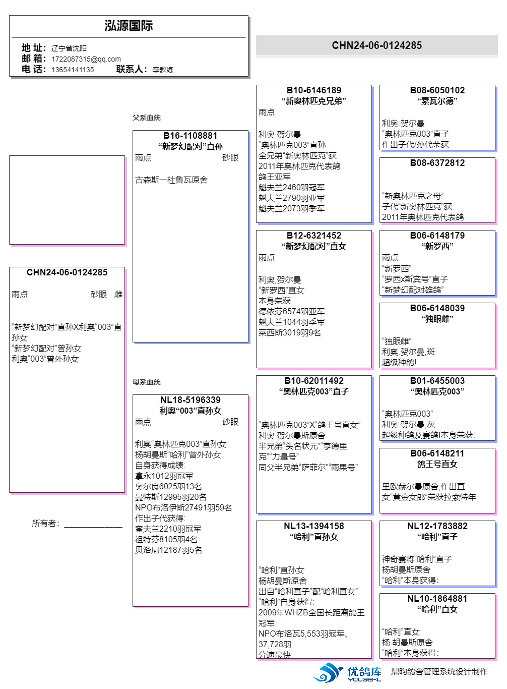 | 1649382 | 多羽前十母亲 利奥003直孙女 | ¥200元 | 1次 |
