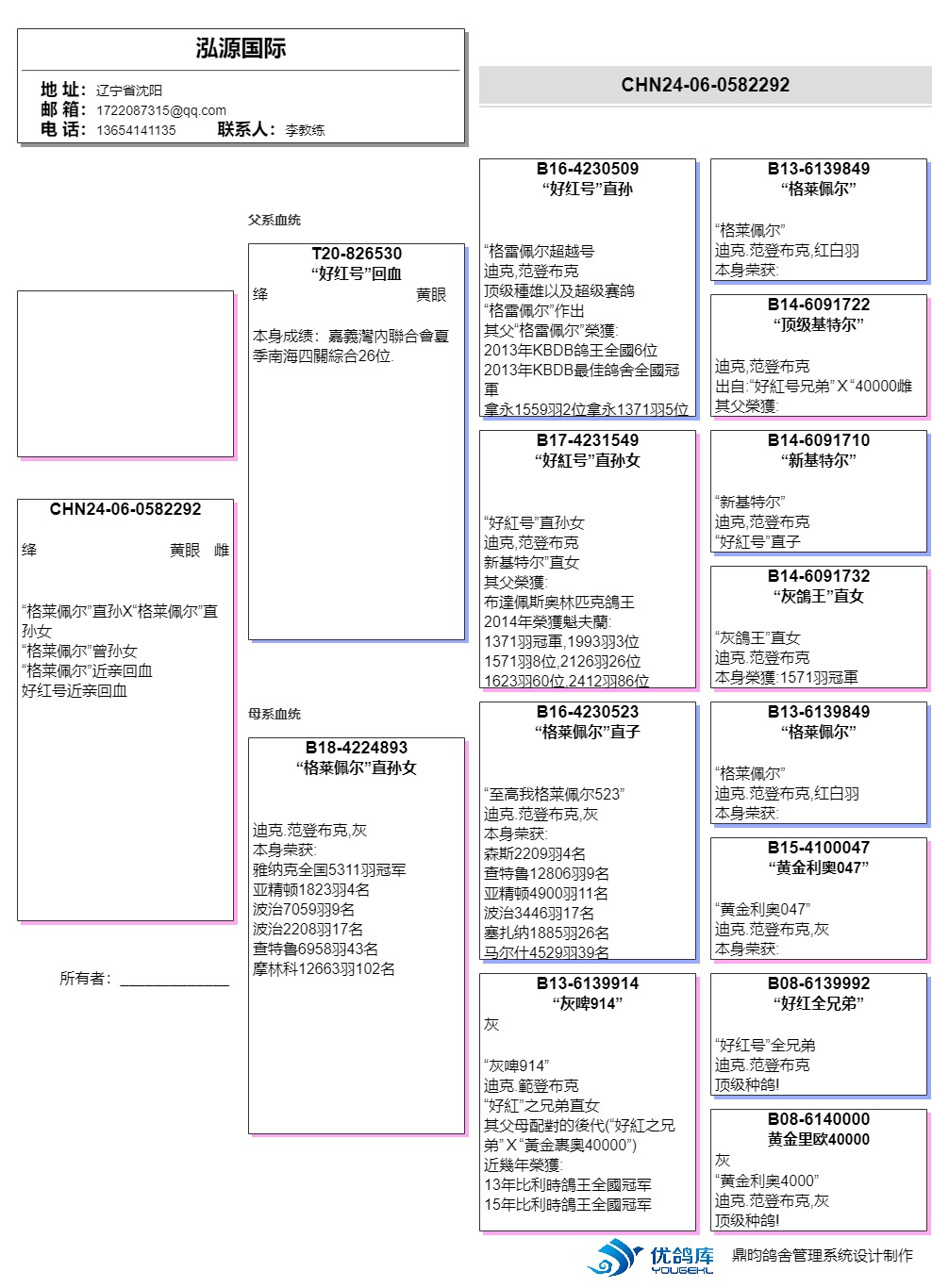 | 1649382 | 多羽前十母亲 利奥003直孙女 | ¥200元 | 1次 |