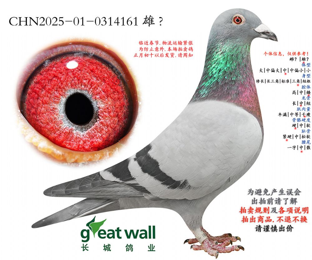 因拍卖鸽均是未做育过的种鸽或幼鸽,图内所标雌雄仅供参考,实际性别已实物为准。不做退换理由。
