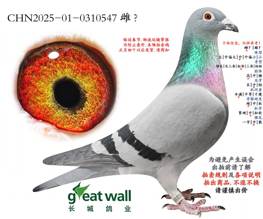 因拍卖鸽均是未做育过的种鸽或幼鸽,图内所标雌雄仅供参考,实际性别已实物为准。不做退换理由。