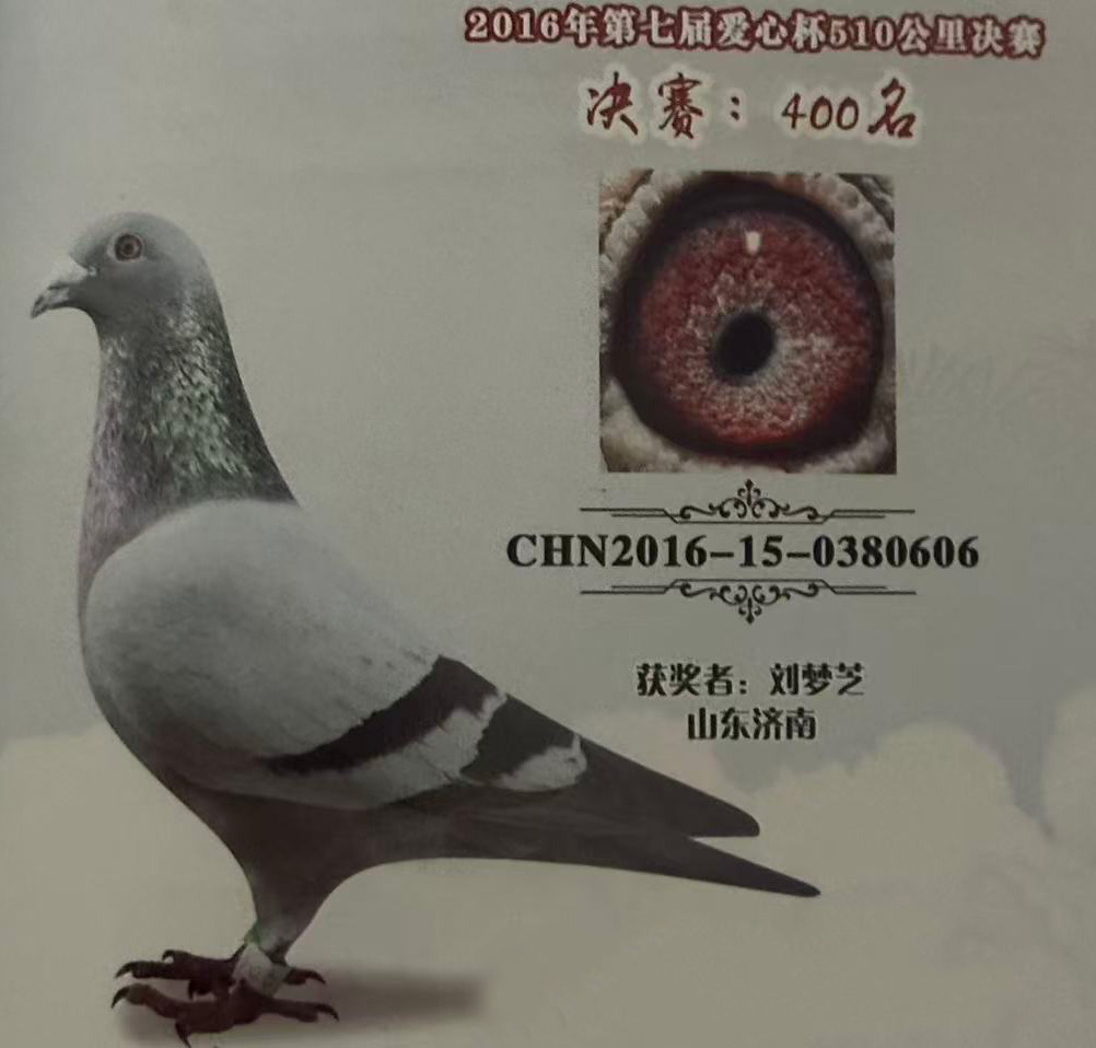 自身山东舜峰公棚决赛400名性别:雄羽色:灰血统:凡龙。 自身条件优秀 中等体型。骨架硬朗。自身作出500公里亚军! 23名 孙代特比环6名 等众多获奖鸽鸽主公棚赛 地方赛特比环鸽王冠军 前十名众多