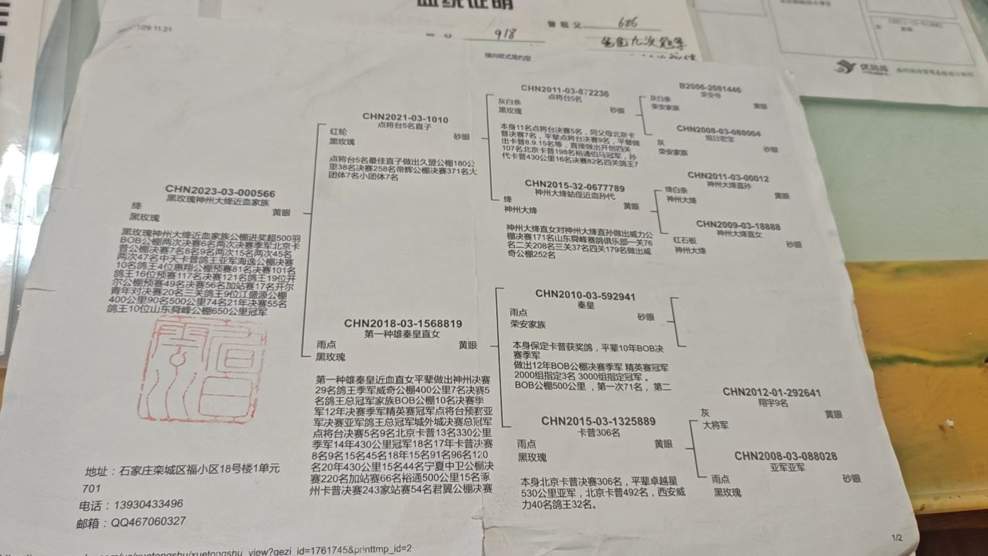 引进河北旭日云川鸽业-张伟伟私环种鸽 鸽主各大公棚前十众多1!!血统:神州大绛性别:雄羽色:绛。 肌肉饱满 骨架硬朗。自身条件非常优秀。自身作出公棚135名!血统表搬家丢失!!!! 保留原版照片!!! 介意勿拍!!