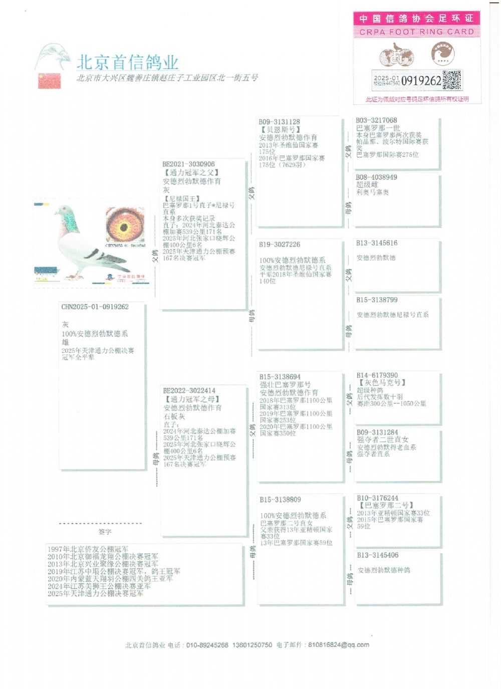 - 当前查看拍卖鸽:25公棚冠军全平辈纯安德烈勃默德262