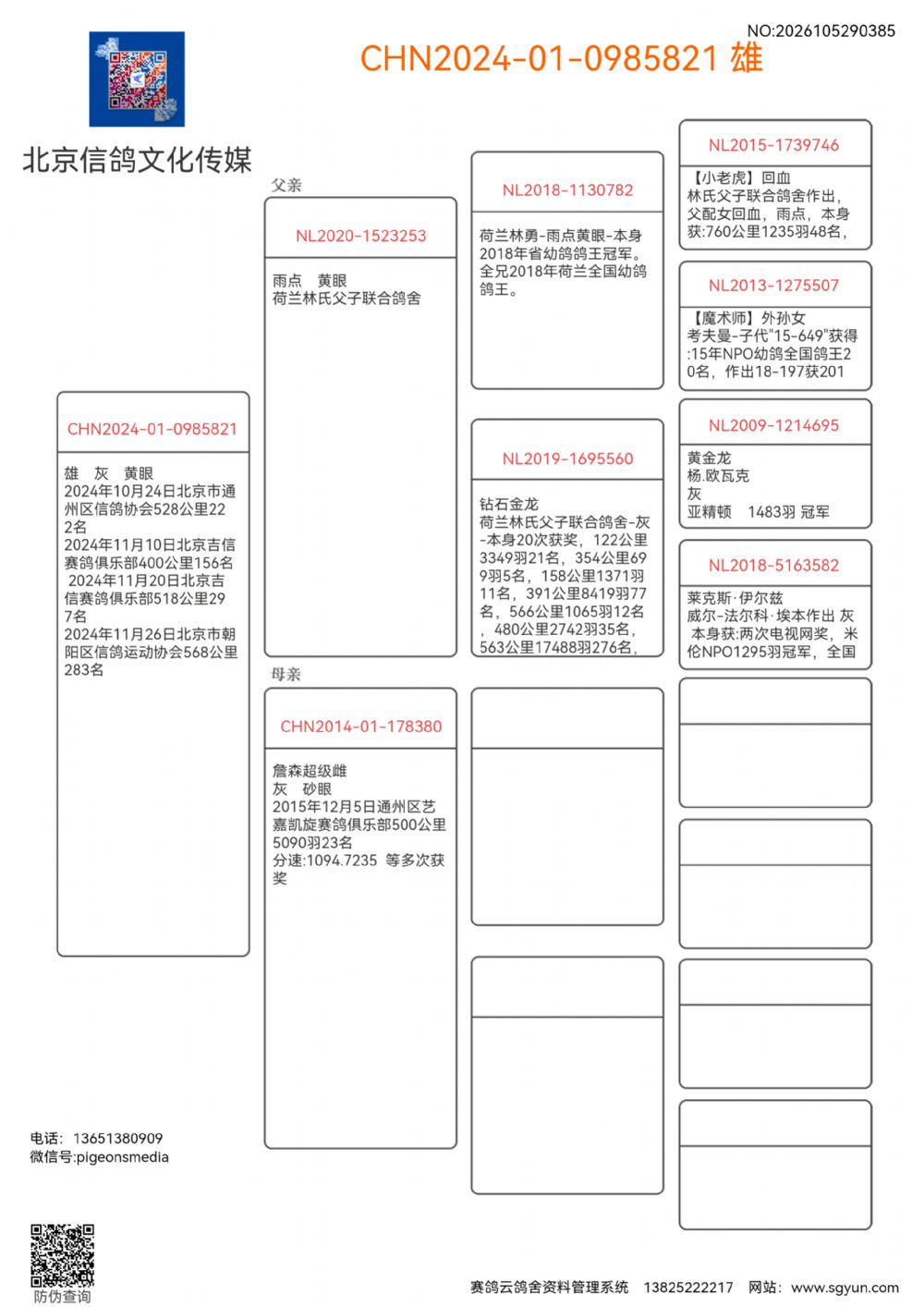林勇鸽王冠军孙 多次获奖鸽