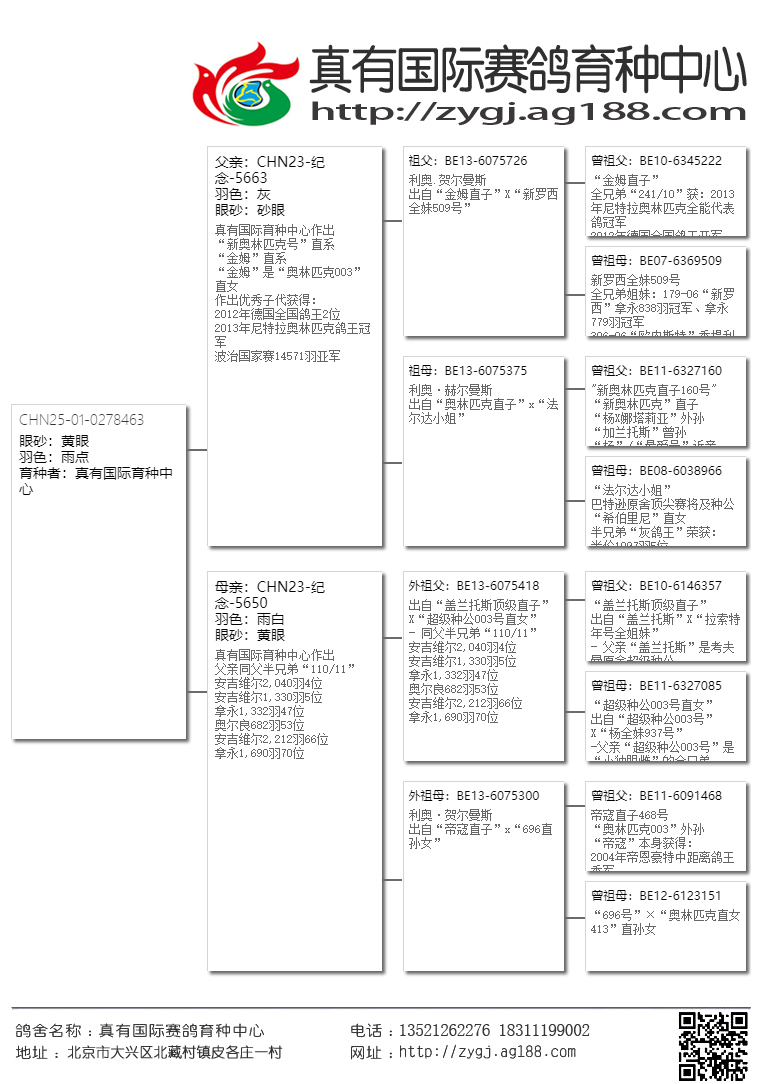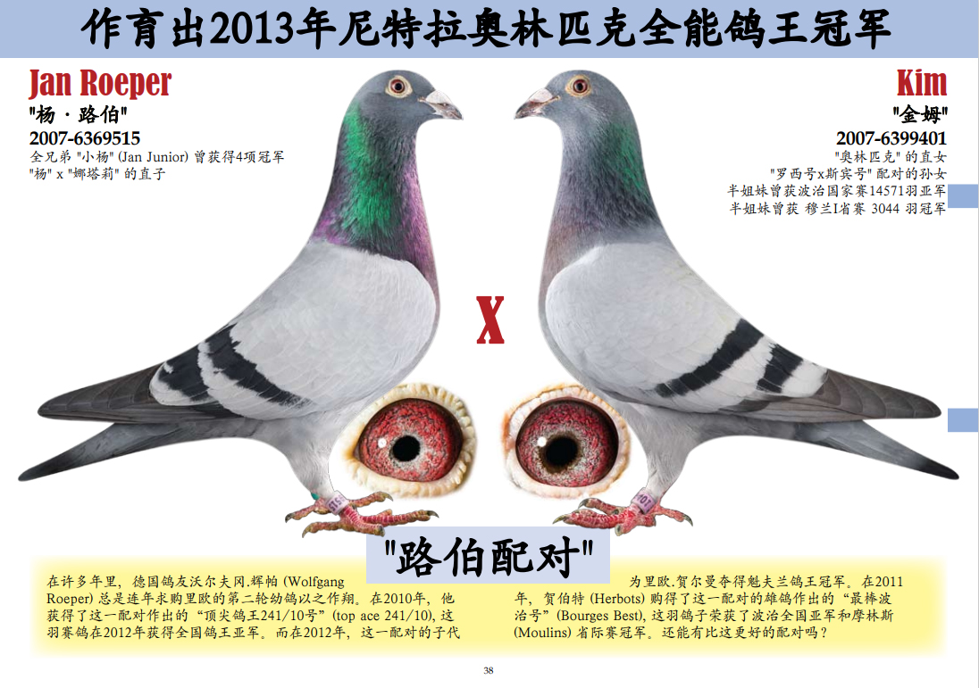 【在这三座金矿还未被世人发现之前,真有国际就第一时间把高品质的鸽子带到了国内,取得了空前的发挥。近几年大家才逐渐认识这几位大师鸽子的魅力。请记住!当任何商业鸽舍进入炒作后期的时候,他的鸽子质量与价值都会急剧下降,即便是詹森兄弟也难免于此。所以引进这家鸽舍最巅峰时期的鸽子,得以延续,才是真有国际成功的致胜法宝。】