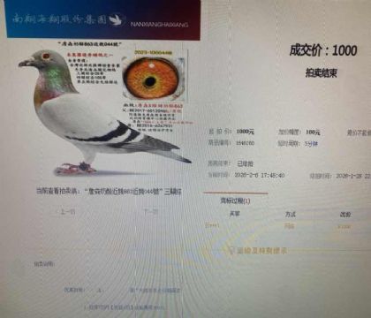 - 当前查看拍卖鸽:弃标鸽“詹森奶酪近親863近親044號”