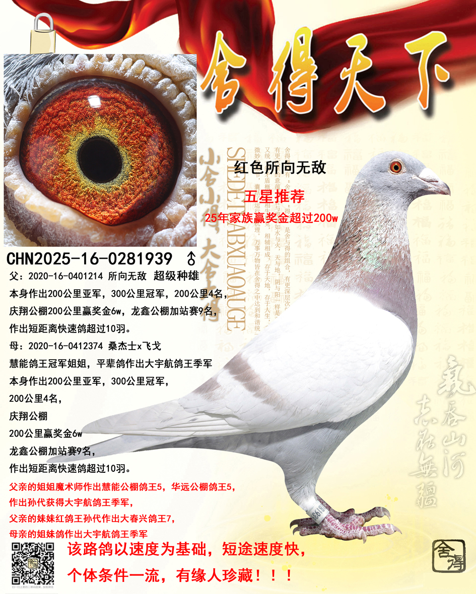 | 1649916 | 慧能鸽王冠军近亲作出 | ¥600元 | 3次 |