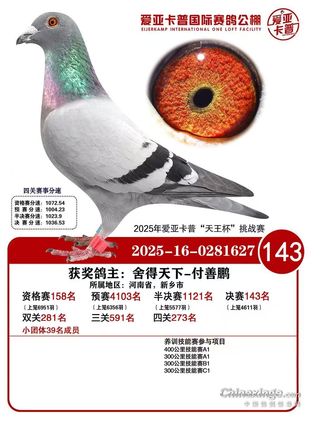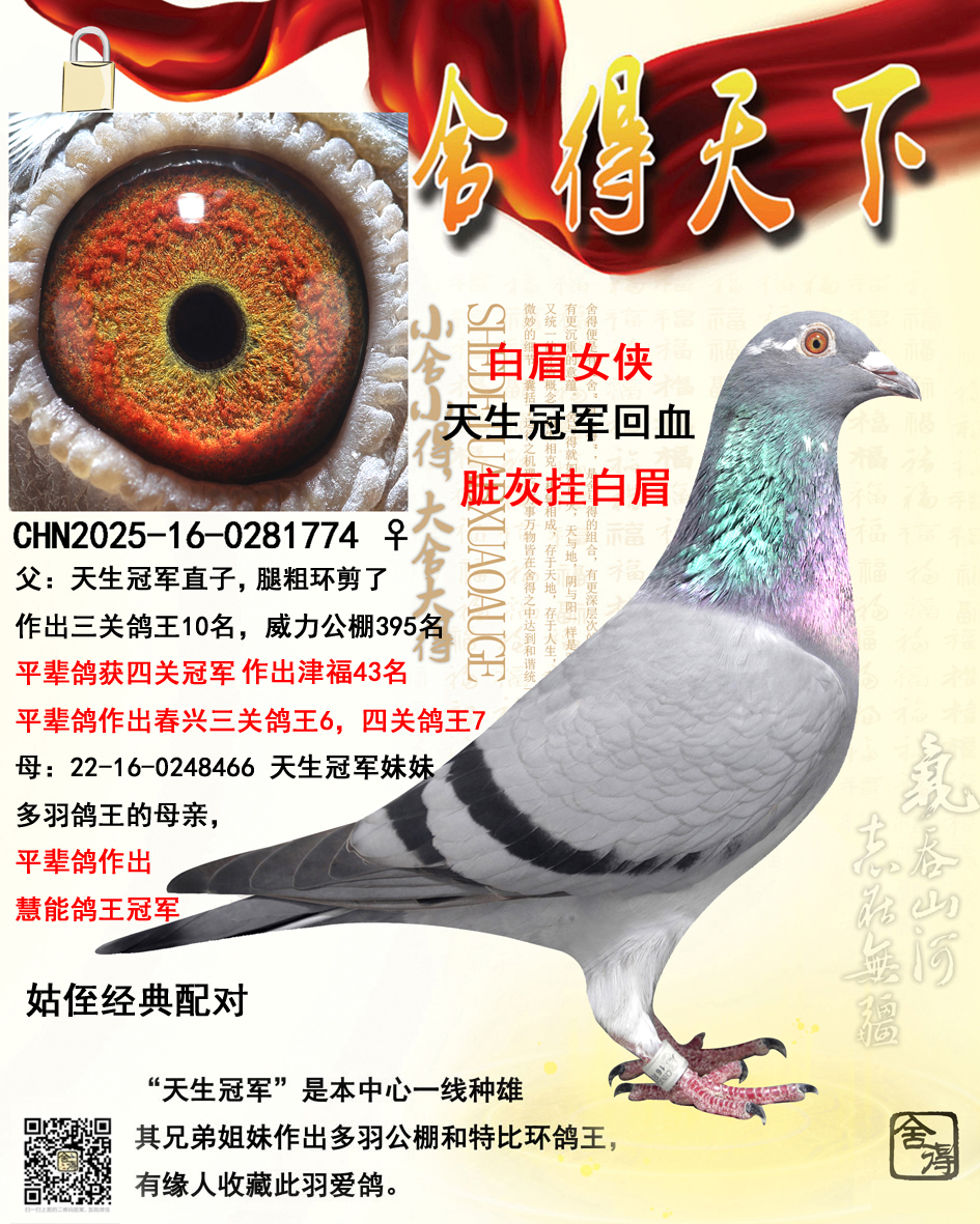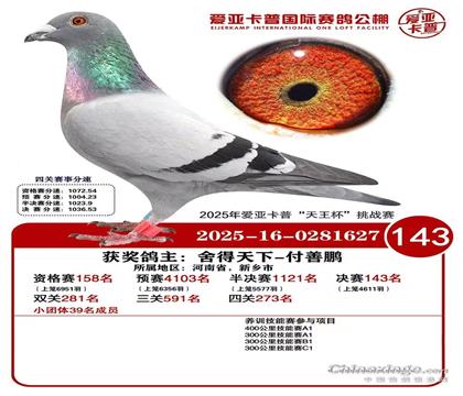 | 1649911 | 春兴决赛34名同父平辈,宇航公棚退赛鸽 | ¥800元 | 4次 |