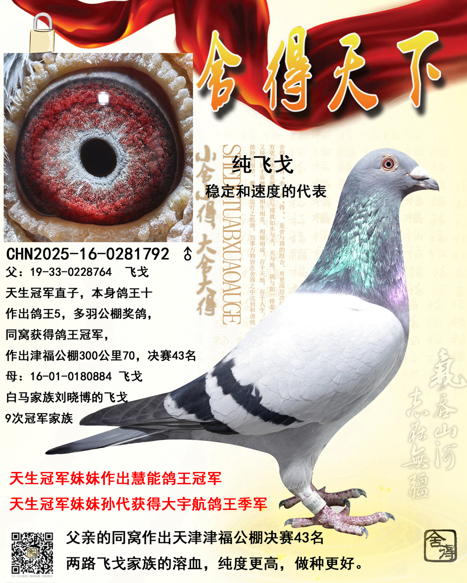 平辈鸽鸽王和冠军多羽,该路鸽是速度和耐力的完美结合,