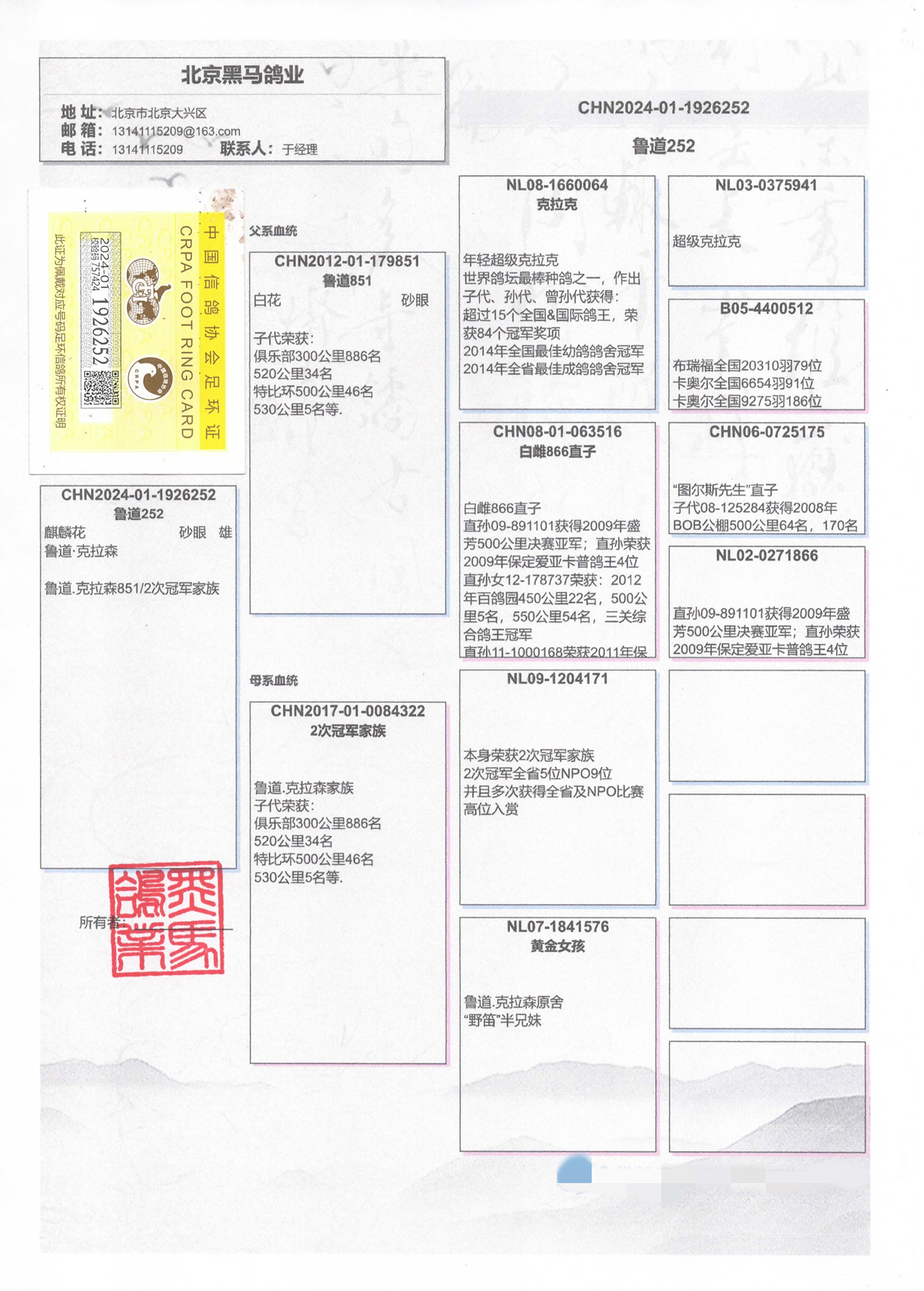 1649945 迪克.范登布克 冠军近血/“好红号”直孙女 ¥2000元 0次