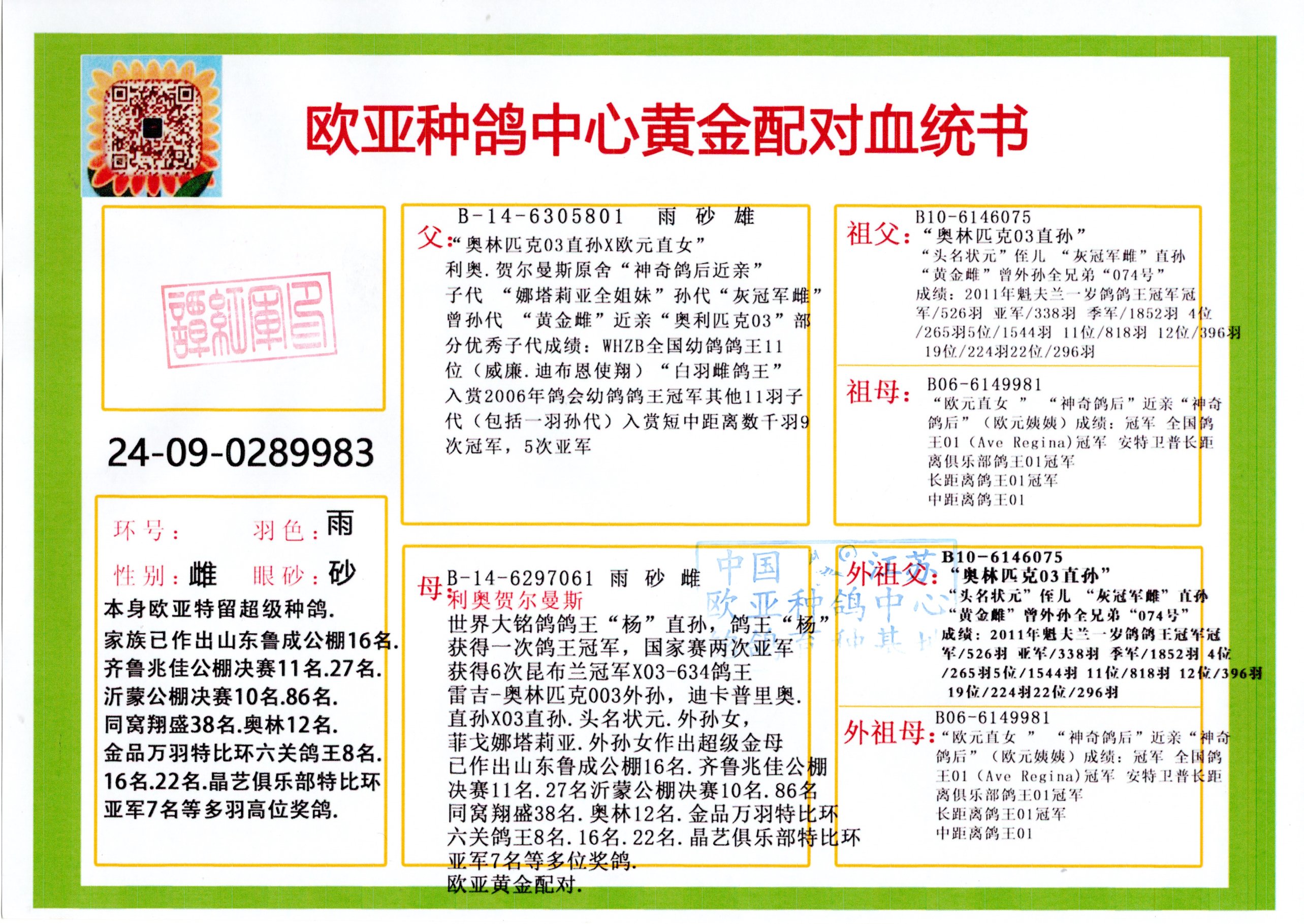 24年秋南京特比环欧亚荣获大团体冠军.小团体冠军551公里大特比13名.14名.16名.19名.20名.21名.24名.26名.27名.28名.42名.52名.54名.57名.65名.66名.68名.70名.71名.72名.74名.76名.80名.82名.83名.84名.85名.86名.90名.92名.110名.116名.121名.122名.128名.131名.158名.161名.164名.165名.166名.172名.174名.177名.182名.195名.196名.201名.205名.208名.210名.216名.253名.269名.275名.276名.294名.296名.299名,,24年秋云南天南铜都公棚决赛415名.天南铜都小棚决赛409名.云南玉活公棚决赛102名.490名.团体32名上笼二羽进二羽,天南铜都大棚506公里决赛445名。热烈祝贺河北省巨鹿县李兰生老师用欧亚泰山号血系连续十一年夺冠军,河北省国家赛冠军.全国季军等多次前十名高位,扬州王军王总用欧亚利奥24年春季获山东翔宇公棚决赛33名盖比53名。南京刘正龙刘总用欧亚盖比获得24年秋山东潍坊国际公棚决赛42名.精英赛30名.三关鸽王71名.决赛86名.加站赛16名.南京市特比环A组鸽王9名.B组鸽王5名.6名.C组鸽王5名.精英赛冠军4名.技能赛A组冠军4名.5名.秦淮区特比环荣获15名.46名.48名.87名。四川西昌徐亮徐总用欧亚利奥获得凉山州聚友决赛177名.第二关亚军双关鸽王19名.三关鸽王105名.云南豪庭公棚决赛603名。热烈祝贺24年四川重庆翔园鸽舍用欧亚泰山号荣获春季400公里冠军.秋季500公里冠军,河北王总用詹森X利奥获得千羽千翔公棚400公里冠军,广东蔡楷焕荣获24年秋爱好者 赛鸽俱乐部三关鸽王季军.一关420公里99名.二关450公里11名.三关520公里32名.单关季军.7名.12名,江西李卫兴荣获贵州红枫公棚8名.共翔俱乐部寄养棚四关综合鸽王30名.一关400公里78名.二关500公里55名.三关520公里37名.四关500公里57名.同父母获公棚18名.雷鸣获得武汉黄浦育翔中心冠军,四川陈文获得四川明鸿俱乐部300公里梦幻2名.3名.4名.9名.10名.13名.14名.15名.31名.34名.40名.41名.42名.43名.69名.71名.72名.73名.74名.94名.95名.97名.98名.99名.419公里决赛荣获总冠军7名.总共归巢9羽,四川徐亮获豪庭决赛603名,山西郑勇获得山西泰鑫公棚决赛255名詹森红狐,热烈祝贺马总获得开尔(飞跃队)决赛9名获奖金1310000万元.第一关52名,天津津福资赛180公里96名.获奖金429543万元,欧亚支持全国鸽友24年秋多人报喜 祝大家取得更好成绩,给欧亚报喜鸽友欧亚决定给每人赠送一羽超级种鸽。欧亚俱乐部特比环多关鸽王成绩:15年秋淮安特比环黑色星期一全会上笼9700多羽,当天无鸽归巢,第二天全会归巢357羽,本舍归巢158羽.前十名八羽.前一百名归巢57羽,16年春季获五关鸽王总冠军,总亚军四名.六名.七名.九名.十名.晶艺俱乐部520公里冠亚季军5名.6名.7名.9名.11名等,火车头冠军.季军6名.8名.9名.10名,16年秋晶艺俱乐部特比环520公里亚军.季军4名.6名.7名.9名,15年春南京白下特比环冠军.亚军.季军6名.7名.8名.9名.10名.指定鸽A B组获得冠军.亚军.季军4名.5名.,17年淮安特比环亚军.4名.5名.7名.8名.10名.六关鸽王总冠军.4名.6名.9名.10名,寄养棚宿迁刘总20羽特比环获冠军.季军.4名.7名.8名.9名等。18年荣获万羽特比环六关鸽王总冠军.总亚军.总季军.6名.8名.十名.单关四羽冠军.二羽亚军.四羽季军.前十名27羽。19年秋万羽特比环六关鸽王总亚军.总季军.5名.8名等,单关二羽冠军.三羽亚军.一羽季军前十名31羽。20年秋淮安市鸽会四关特比环大赛风雨无阻鸽王亚军.鸽王六名,金品俱乐部万羽特比环六关鸽王总冠军,总亚军.四名.五名.六名.七名.八名.十名.前二百名鸽王35羽,单关冠亚季军前十名四十多羽,火车头五关鸽王季军.六名.八名.前二百名鸽王十七羽。20年春荣获淮安五区一市四关鸽王总冠军.亚军.四名.八名.九名。21年秋荣获金品万羽特比环大赛六关鸽王总亚军.总季军.四名.七名.九名.十名.单关冠亚军季军前十名三十多羽。火车头协会鸽王六名.七名.十名.单关前十名十七羽。22年秋荣获鸽王总冠军.总亚军.5名.7名.8名.9名.11名.单关冠亚季军前十名三十多羽,第一关单关前二百名四十多羽,第二关前二百名三十多羽,第三关前二百名四十多羽,第四关前二百名四十多羽,第五关前一百名53羽。23年秋荣获鸽王季军.五名.八名.十名.13名.17名.20名.27名等多羽鸽王.单关前十名二十多羽。公棚.寄养棚部分成绩:16年秋宁夏黄河公棚总冠军电脑戈马力指定通炮冠军,17年送八羽参赛获得鸽王八名进奖四名,支持韩总荣获八名。支持鸽友荣获宁夏中卫公棚决赛总冠军.精英赛冠军,支持18年宁夏黄河公棚决赛冠军詹森X泰山。安徽鼎博寄养棚院内外四关鸽王总冠军.鸽王十七名.三十七名同窝,鸽王39名.42名.58名.67名。18年山东公棚预赛冠军.决赛65名.送八羽进奖五羽.指定获奔驰汽车一辆。支持鸽友获得云南蓝云公棚冠军.盖比X佛卡门。支持鸽友荣获云南银集公棚决赛冠军 詹森427X520血系 速度赛6700羽冠军。17年荣获金马俱乐部寄养棚四关鸽王总冠军.季军.六名.八名.第一关冠军.亚军.季军四名.七名.十一名.金牌教练奖。支持鸽友18年北京费翔公棚预赛九名电脑X桑杰士,支持鸽友荣获陕西威力公棚决赛11名.内蒙古临河寄养棚四关鸽王六名.詹森配泰山,支持河北王总用欧亚詹森427配胡本喜获20年秋开尔青年棚季军。云南东荣公棚16年预赛冠军.决赛77名.17年决赛12名.詹森红狐X泰山,17年平安公棚决赛4名 詹森427。欧亚获得21年金母寄养棚第一关四名.第二关5名.第三关5名.6名.7名.10名.三关鸽王总冠军,四关鸽王14名.十羽鸽王。支持河