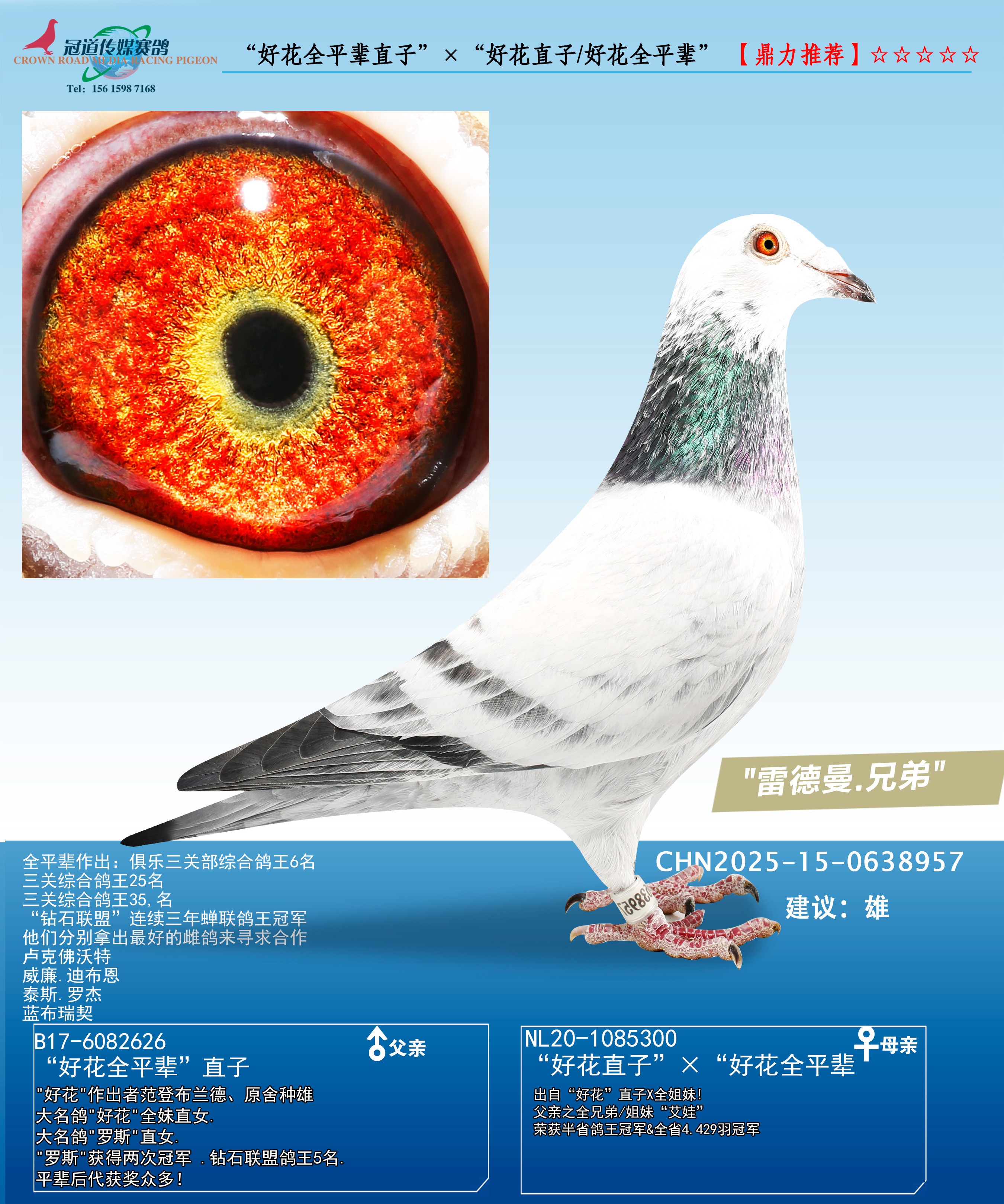 | 1650049 | FCI世界最佳短距离鸽鸽王全国1位(“白人”)近亲 | ¥1000元 | 0次 |