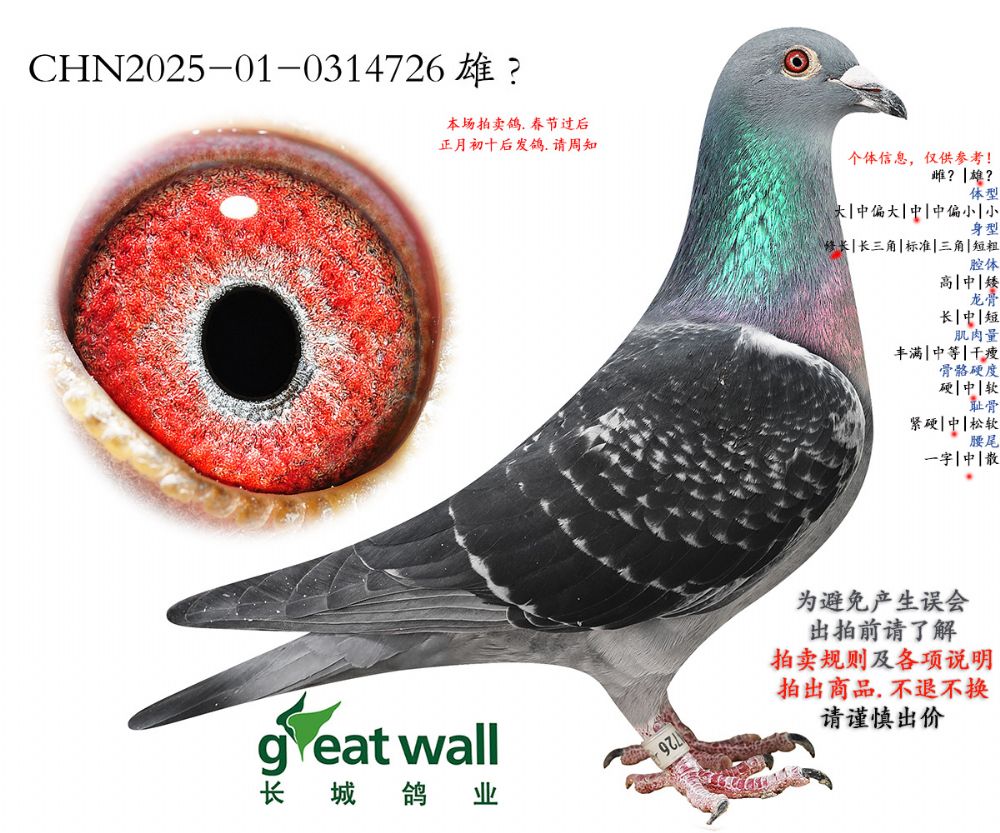 因拍卖鸽均是未做育过的种鸽或幼鸽,图内所标雌雄仅供参考,实际性别已实物为准。不做退换理由。