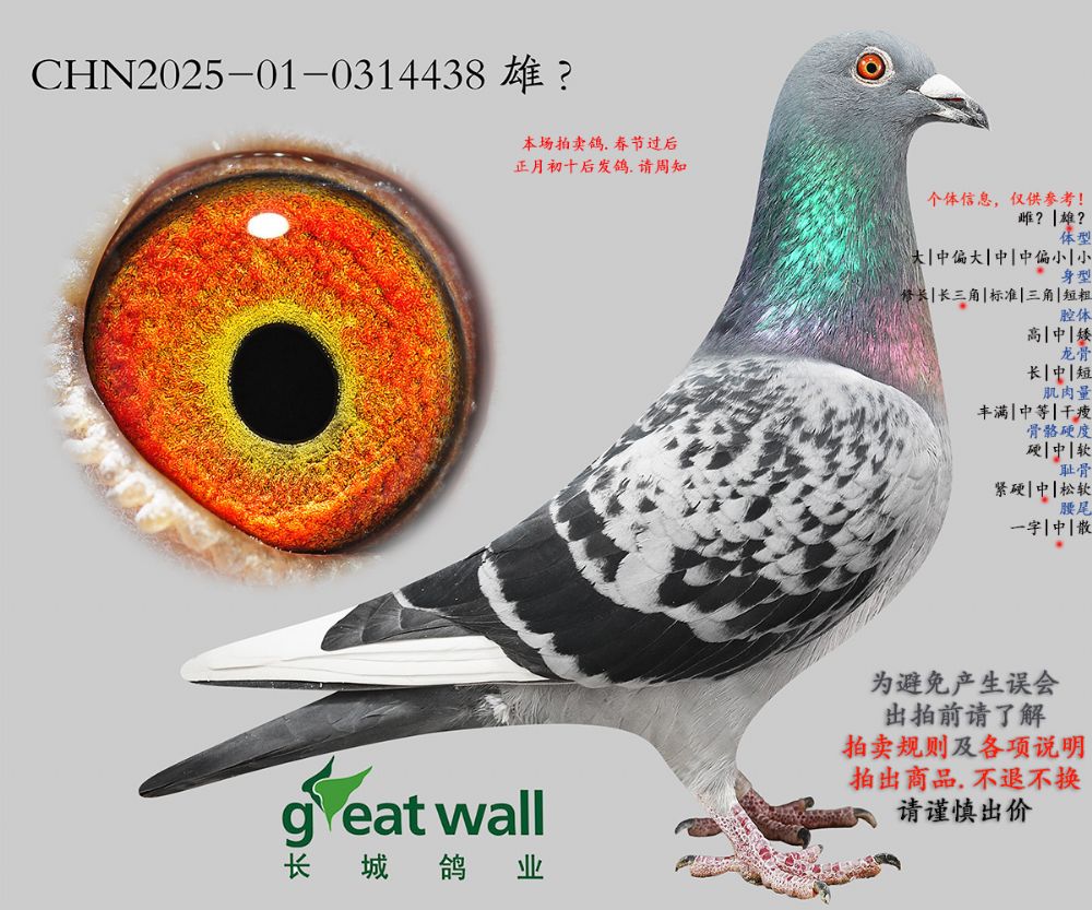 因拍卖鸽均是未做育过的种鸽或幼鸽,图内所标雌雄仅供参考,实际性别已实物为准。不做退换理由。