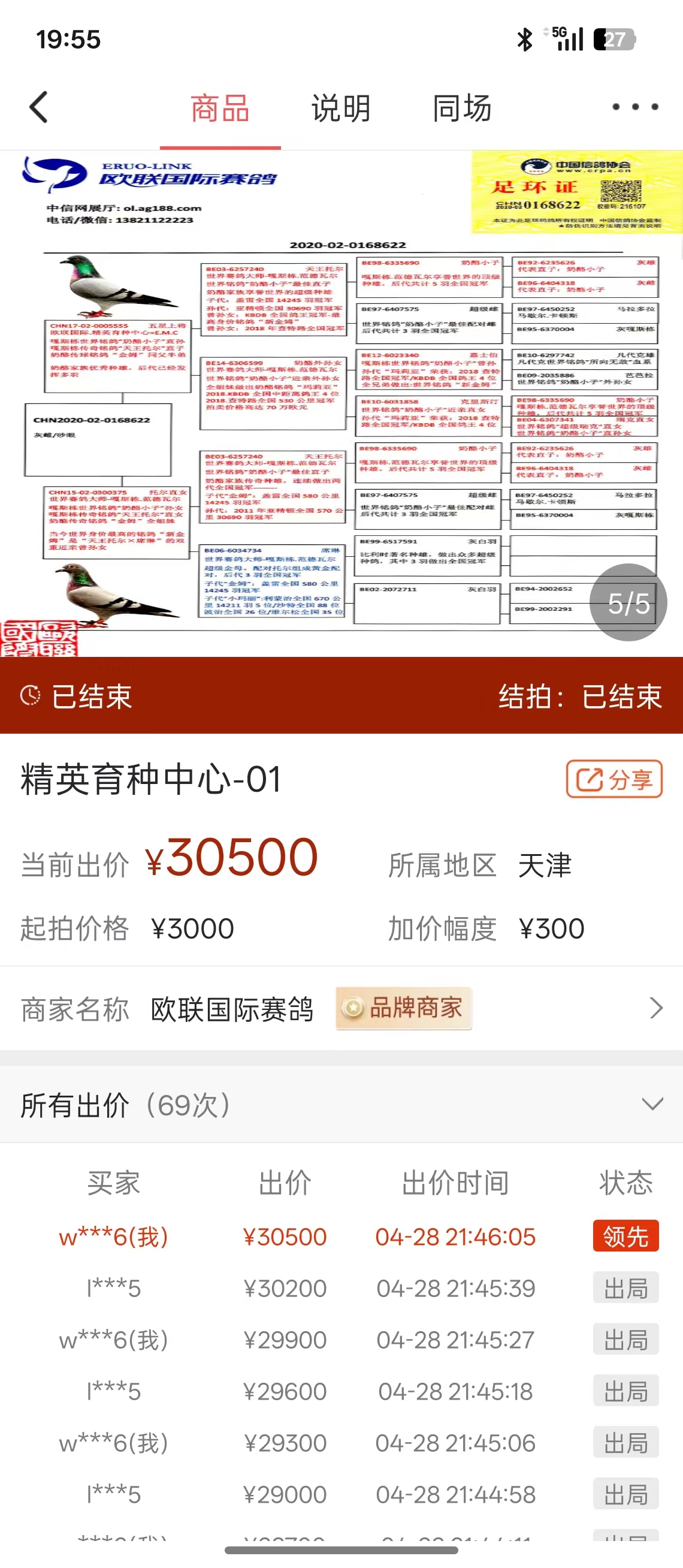 - 当前查看拍卖鸽:欧联240近亲 ,已作育公棚入赏,这是买