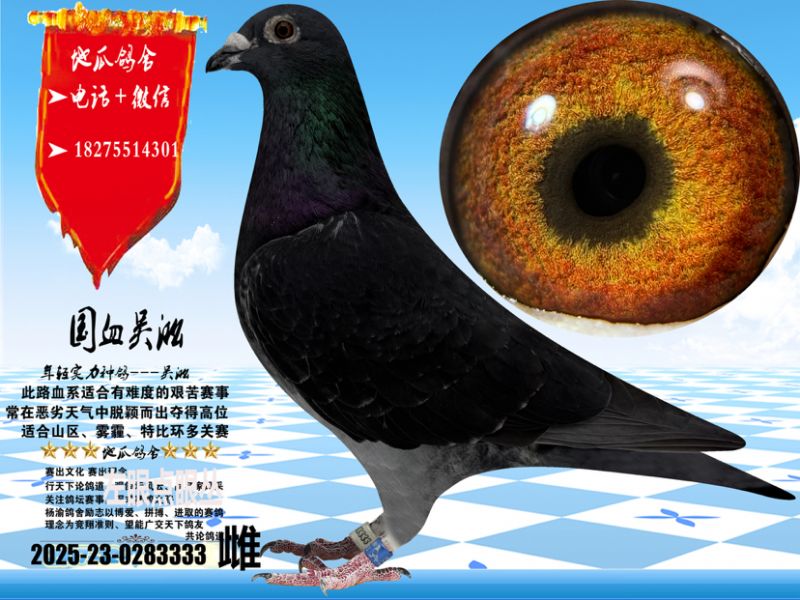 - 当前查看拍卖鸽:国血吴淞汪种雌,豹子号3333,绝对镇棚