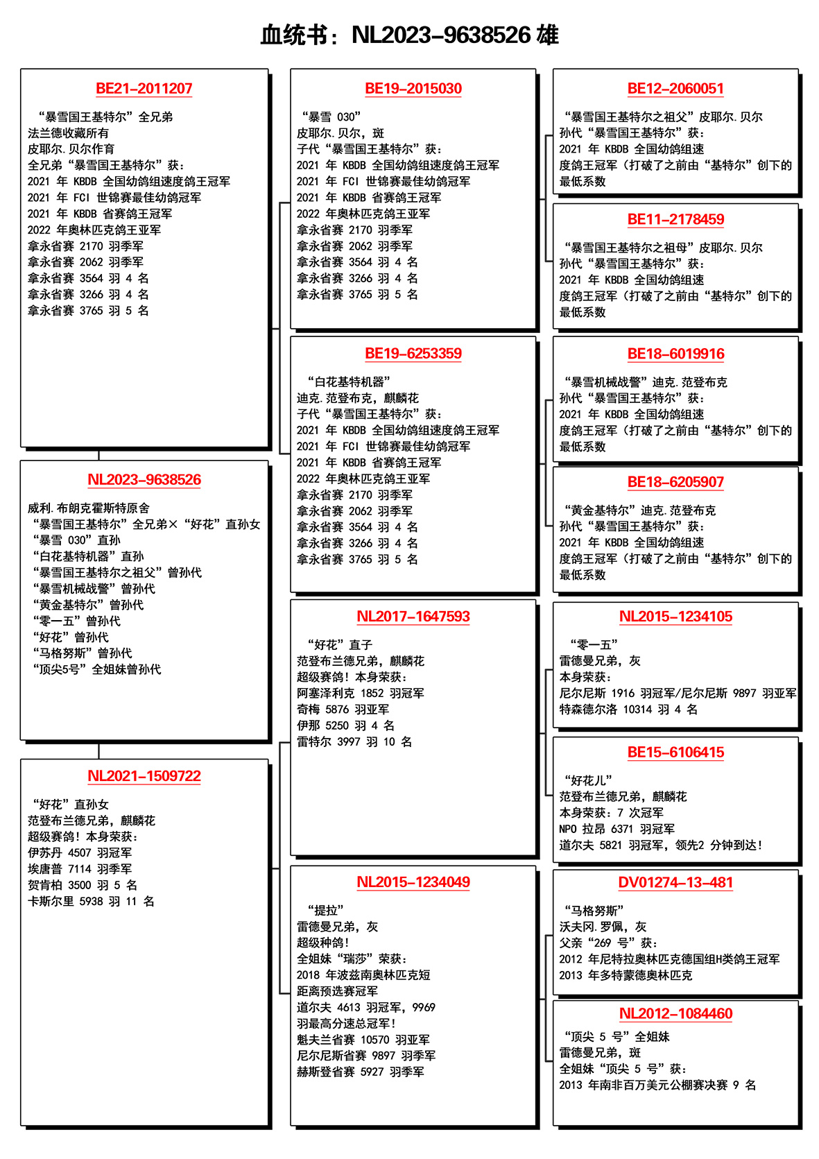 所有拍卖鸽全部血统真实!!个人鉴鸽观点不一,飞不飞天上见.血统成绩第一