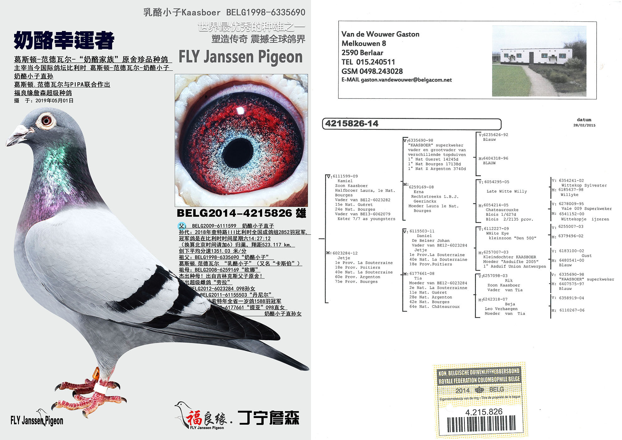 ---“乳酪小子”是传奇级巨星种公!在很短的时间内,“乳酪小子”凭借雄厚的育种实力,成为超级传奇种公!他的6代后代主宰着当今的国际鸽坛!