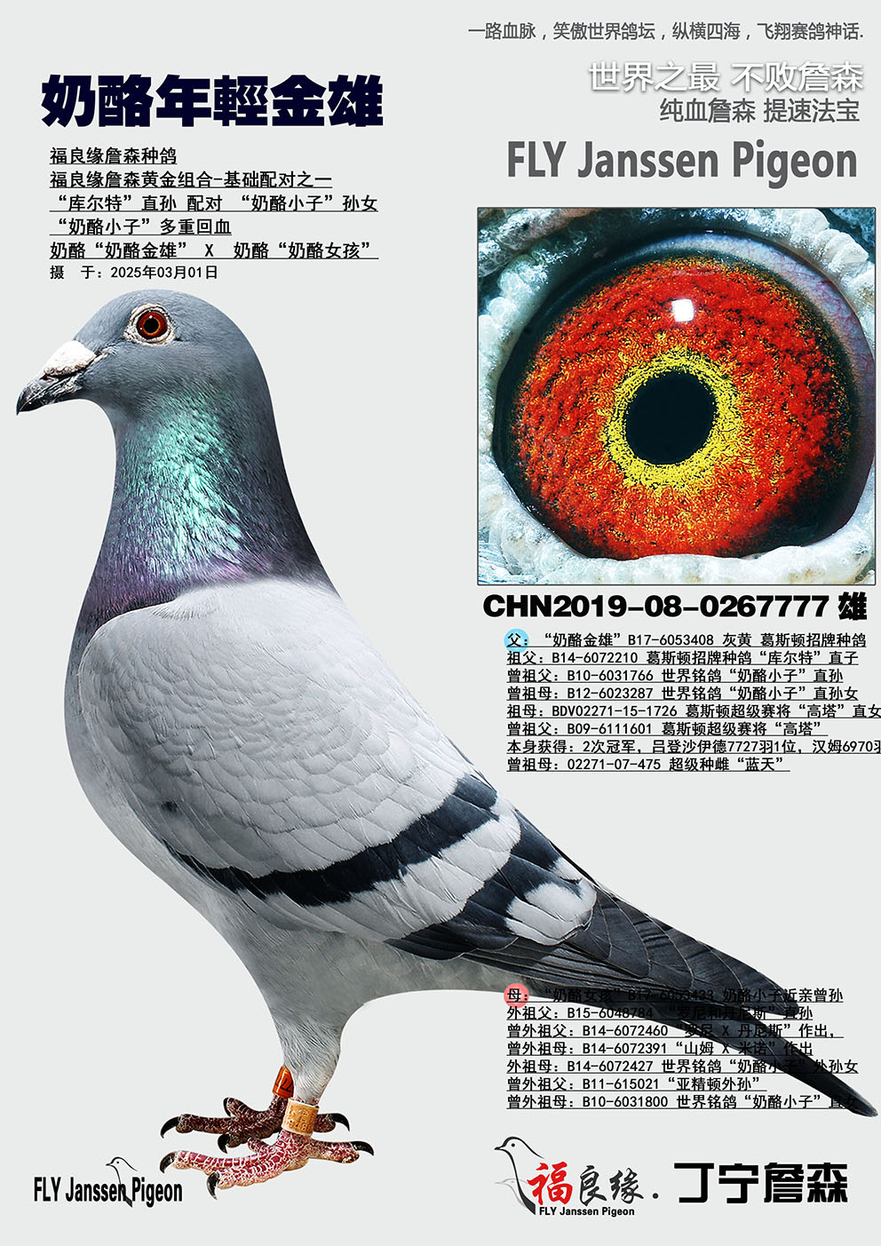 祖父:“奶酪金雄”B17-6053408 灰黄 葛斯顿招牌种鸽