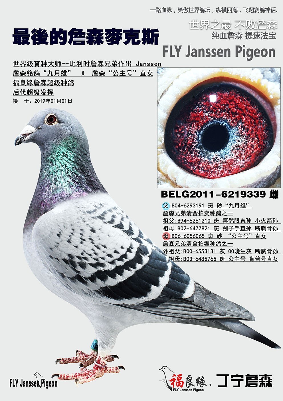 曾外祖父:B96-6376222 斑 019孙 白羽号直孙 比利时詹森兄弟作Janssen