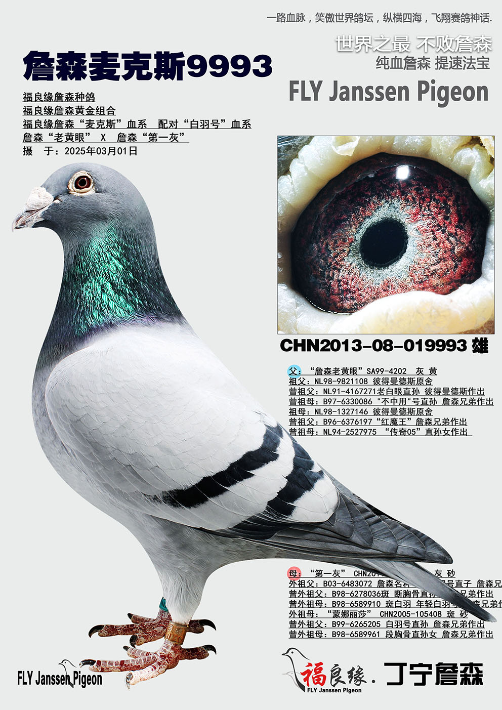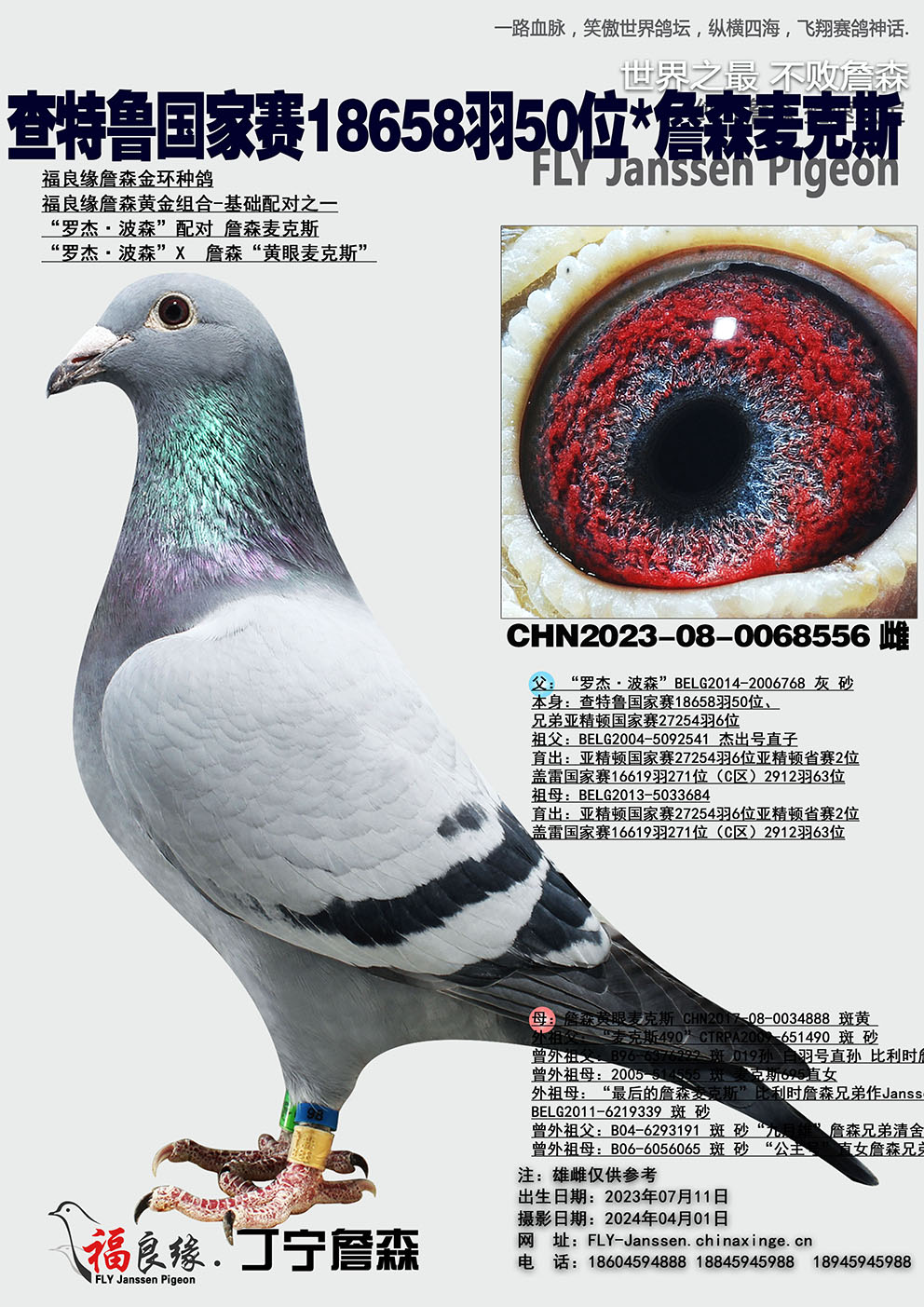 曾祖父:B03-6483072 詹森名种年轻白羽号直子 比利时詹森兄弟作Janssen