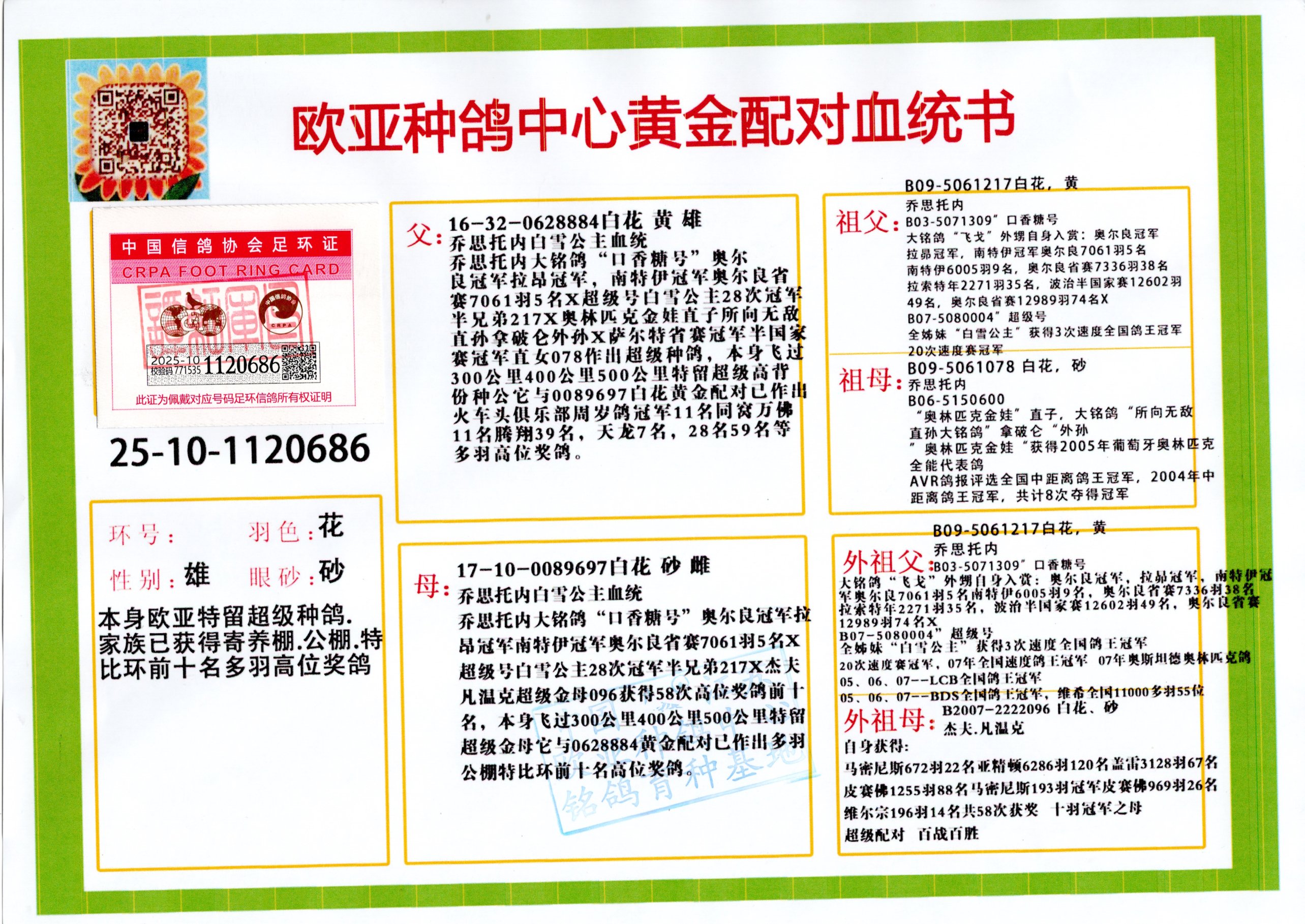 24年秋南京特比环欧亚荣获大团体冠军.小团体冠军551公里大特比13名.14名.16名.19名.20名.21名.24名.26名.27名.28名.42名.52名.54名.57名.65名.66名.68名.70名.71名.72名.74名.76名.80名.82名.83名.84名.85名.86名.90名.92名.110名.116名.121名.122名.128名.131名.158名.161名.164名.165名.166名.172名.174名.177名.182名.195名.196名.201名.205名.208名.210名.216名.253名.269名.275名.276名.294名.296名.299名,,24年秋云南天南铜都公棚决赛415名.天南铜都小棚决赛409名.云南玉活公棚决赛102名.490名.团体32名上笼二羽进二羽,天南铜都大棚506公里决赛445名。热烈祝贺河北省巨鹿县李兰生老师用欧亚泰山号血系连续十一年夺冠军,河北省国家赛冠军.全国季军等多次前十名高位,扬州王军王总用欧亚利奥24年春季获山东翔宇公棚决赛33名盖比53名。南京刘正龙刘总用欧亚盖比获得24年秋山东潍坊国际公棚决赛42名.精英赛30名.三关鸽王71名.决赛86名.加站赛16名.南京市特比环A组鸽王9名.B组鸽王5名.6名.C组鸽王5名.精英赛冠军4名.技能赛A组冠军4名.5名.秦淮区特比环荣获15名.46名.48名.87名。四川西昌徐亮徐总用欧亚利奥获得凉山州聚友决赛177名.第二关亚军双关鸽王19名.三关鸽王105名.云南豪庭公棚决赛603名。热烈祝贺24年四川重庆翔园鸽舍用欧亚泰山号荣获春季400公里冠军.秋季500公里冠军,河北王总用詹森X利奥获得千羽千翔公棚400公里冠军,广东蔡楷焕荣获24年秋爱好者 赛鸽俱乐部三关鸽王季军.一关420公里99名.二关450公里11名.三关520公里32名.单关季军.7名.12名,江西李卫兴荣获贵州红枫公棚8名.共翔俱乐部寄养棚四关综合鸽王30名.一关400公里78名.二关500公里55名.三关520公里37名.四关500公里57名.同父母获公棚18名.雷鸣获得武汉黄浦育翔中心冠军,四川陈文获得四川明鸿俱乐部300公里梦幻2名.3名.4名.9名.10名.13名.14名.15名.31名.34名.40名.41名.42名.43名.69名.71名.72名.73名.74名.94名.95名.97名.98名.99名.419公里决赛荣获总冠军7名.总共归巢9羽,四川徐亮获豪庭决赛603名,山西郑勇获得山西泰鑫公棚决赛255名詹森红狐,热烈祝贺马总获得开尔(飞跃队)决赛9名获奖金1310000万元.第一关52名,天津津福资赛180公里96名.获奖金429543万元,欧亚支持全国鸽友24年秋多人报喜 祝大家取得更好成绩,给欧亚报喜鸽友欧亚决定给每人赠送一羽超级种鸽。欧亚俱乐部特比环多关鸽王成绩:15年秋淮安特比环黑色星期一全会上笼9700多羽,当天无鸽归巢,第二天全会归巢357羽,本舍归巢158羽.前十名八羽.前一百名归巢57羽,16年春季获五关鸽王总冠军,总亚军四名.六名.七名.九名.十名.晶艺俱乐部520公里冠亚季军5名.6名.7名.9名.11名等,火车头冠军.季军6名.8名.9名.10名,16年秋晶艺俱乐部特比环520公里亚军.季军4名.6名.7名.9名,15年春南京白下特比环冠军.亚军.季军6名.7名.8名.9名.10名.指定鸽A B组获得冠军.亚军.季军4名.5名.,17年淮安特比环亚军.4名.5名.7名.8名.10名.六关鸽王总冠军.4名.6名.9名.10名,寄养棚宿迁刘总20羽特比环获冠军.季军.4名.7名.8名.9名等。18年荣获万羽特比环六关鸽王总冠军.总亚军.总季军.6名.8名.十名.单关四羽冠军.二羽亚军.四羽季军.前十名27羽。19年秋万羽特比环六关鸽王总亚军.总季军.5名.8名等,单关二羽冠军.三羽亚军.一羽季军前十名31羽。20年秋淮安市鸽会四关特比环大赛风雨无阻鸽王亚军.鸽王六名,金品俱乐部万羽特比环六关鸽王总冠军,总亚军.四名.五名.六名.七名.八名.十名.前二百名鸽王35羽,单关冠亚季军前十名四十多羽,火车头五关鸽王季军.六名.八名.前二百名鸽王十七羽。20年春荣获淮安五区一市四关鸽王总冠军.亚军.四名.八名.九名。21年秋荣获金品万羽特比环大赛六关鸽王总亚军.总季军.四名.七名.九名.十名.单关冠亚军季军前十名三十多羽。火车头协会鸽王六名.七名.十名.单关前十名十七羽。22年秋荣获鸽王总冠军.总亚军.5名.7名.8名.9名.11名.单关冠亚季军前十名三十多羽,第一关单关前二百名四十多羽,第二关前二百名三十多羽,第三关前二百名四十多羽,第四关前二百名四十多羽,第五关前一百名53羽。23年秋荣获鸽王季军.五名.八名.十名.13名.17名.20名.27名等多羽鸽王.单关前十名二十多羽。公棚.寄养棚部分成绩:16年秋宁夏黄河公棚总冠军电脑戈马力指定通炮冠军,17年送八羽参赛获得鸽王八名进奖四名,支持韩总荣获八名。支持鸽友荣获宁夏中卫公棚决赛总冠军.精英赛冠军,支持18年宁夏黄河公棚决赛冠军詹森X泰山。安徽鼎博寄养棚院内外四关鸽王总冠军.鸽王十七名.三十七名同窝,鸽王39名.42名.58名.67名。18年山东公棚预赛冠军.决赛65名.送八羽进奖五羽.指定获奔驰汽车一辆。支持鸽友获得云南蓝云公棚冠军.盖比X佛卡门。支持鸽友荣获云南银集公棚决赛冠军 詹森427X520血系 速度赛6700羽冠军。17年荣获金马俱乐部寄养棚四关鸽王总冠军.季军.六名.八名.第一关冠军.亚军.季军四名.七名.十一名.金牌教练奖。支持鸽友18年北京费翔公棚预赛九名电脑X桑杰士,支持鸽友荣获陕西威力公棚决赛11名.内蒙古临河寄养棚四关鸽王六名.詹森配泰山,支持河北王总用欧亚詹森427配胡本喜获20年秋开尔青年棚季军。云南东荣公棚16年预赛冠军.决赛77名.17年决赛12名.詹森红狐X泰山,17年平安公棚决赛4名 詹森427。欧亚获得21年金母寄养棚第一关四名.第二关5名.第三关5名.6名.7名.10名.三关鸽王总冠军,四关鸽王14名.十羽鸽王。支持河