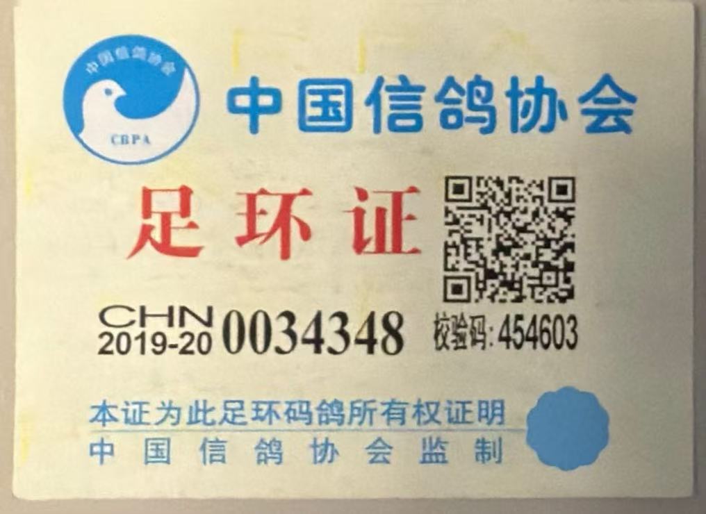 2020年广西柳州市秋季鸽会500公里大奖赛亚军(恶劣天气,沿途下雨,当天仅归两羽、扫描领先冠军7分钟)