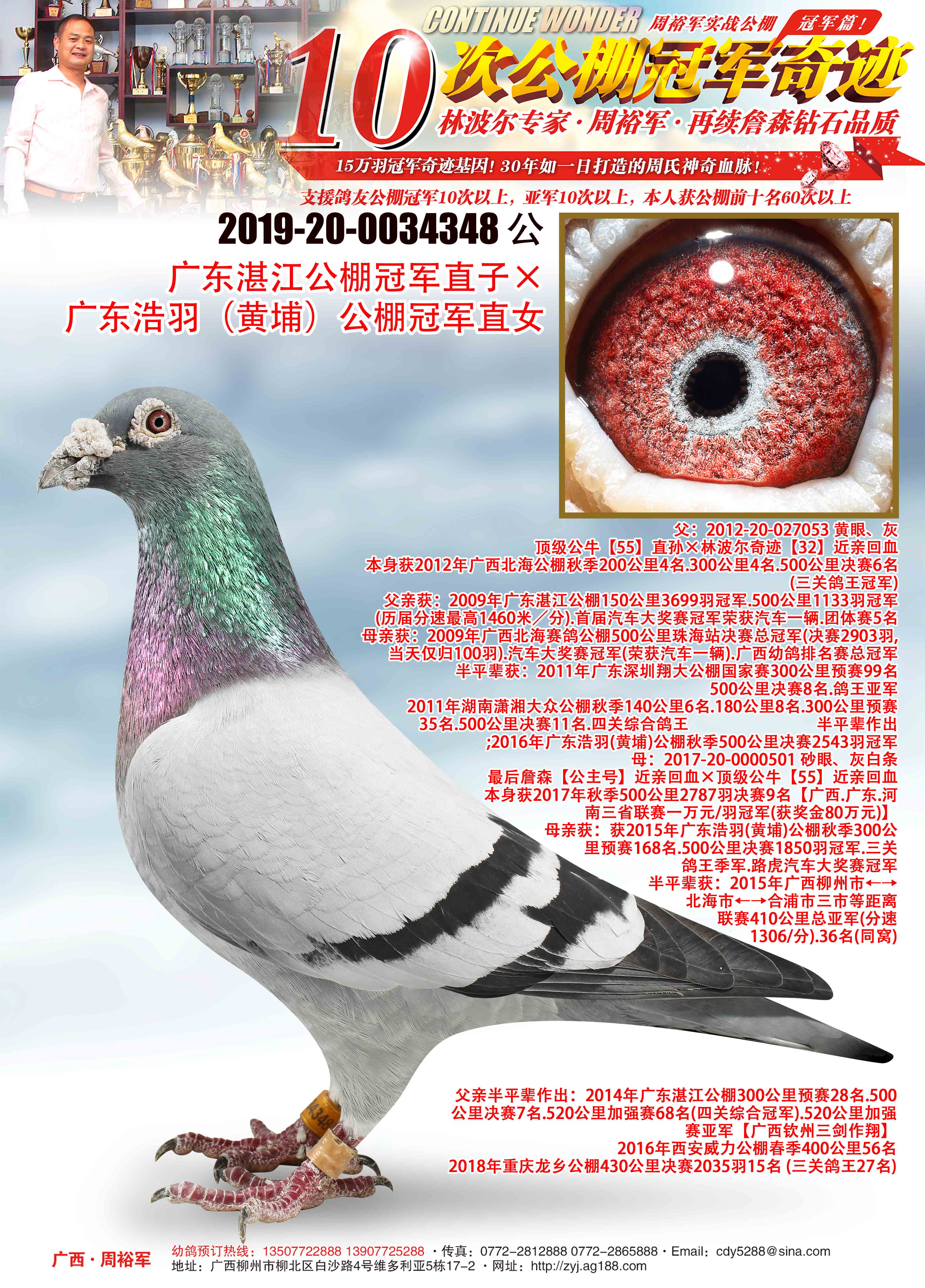 2019-20-0034348 砂眼、灰 ♂ 广东湛江公棚冠军直子×广东浩羽(黄埔)公棚冠军直女