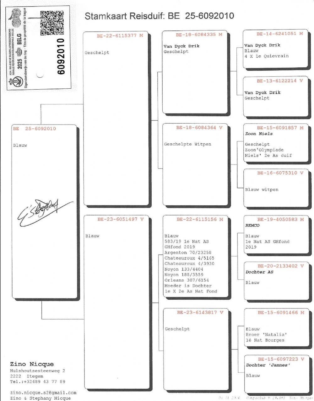 欧洲原舍凡戴克血系KBDB鸽王冠军-6092010雄