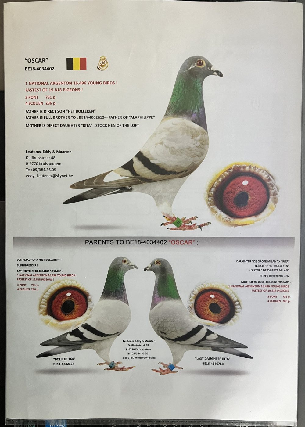 - 当前查看拍卖鸽:比利时----鲁腾兹父子鸽舍--“奥斯卡