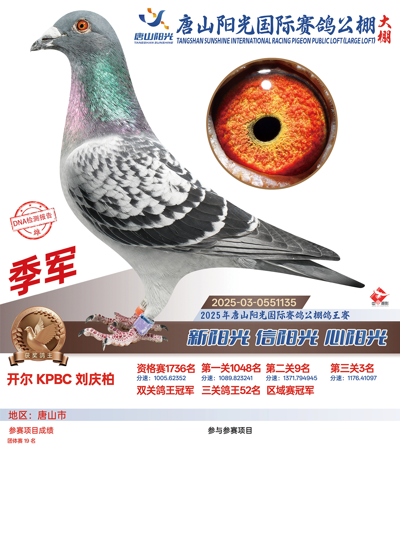 - 当前查看拍卖鸽:唐山阳光双关鸽王冠军,决赛季军同父兄妹