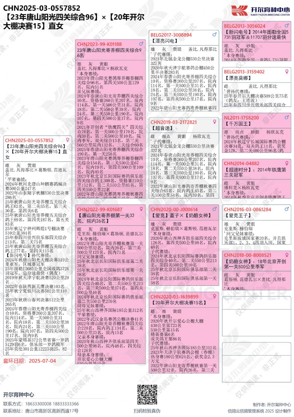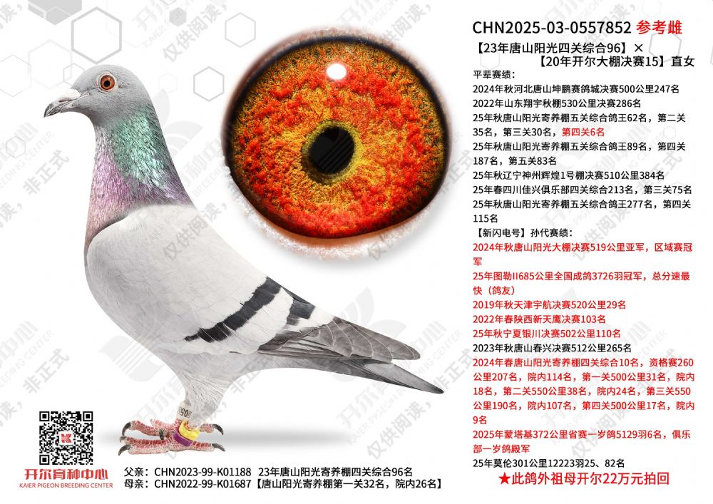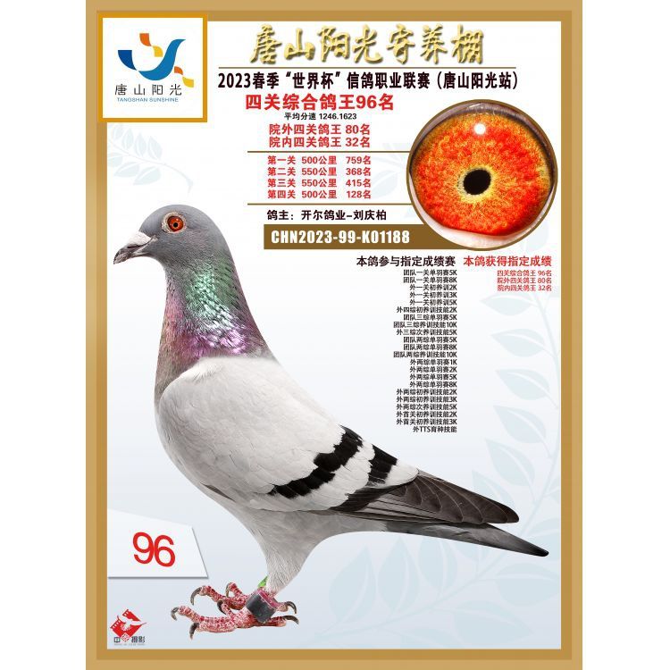 - 当前查看拍卖鸽:23年唐山阳光四关综合96×20年开尔大