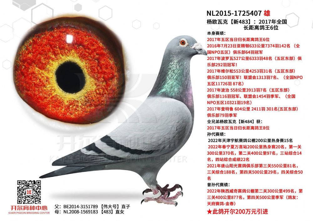 | 1652562 | 21年开尔俱乐部综合鸽王479名(雄鸽) | ¥4500元 | 4次 |