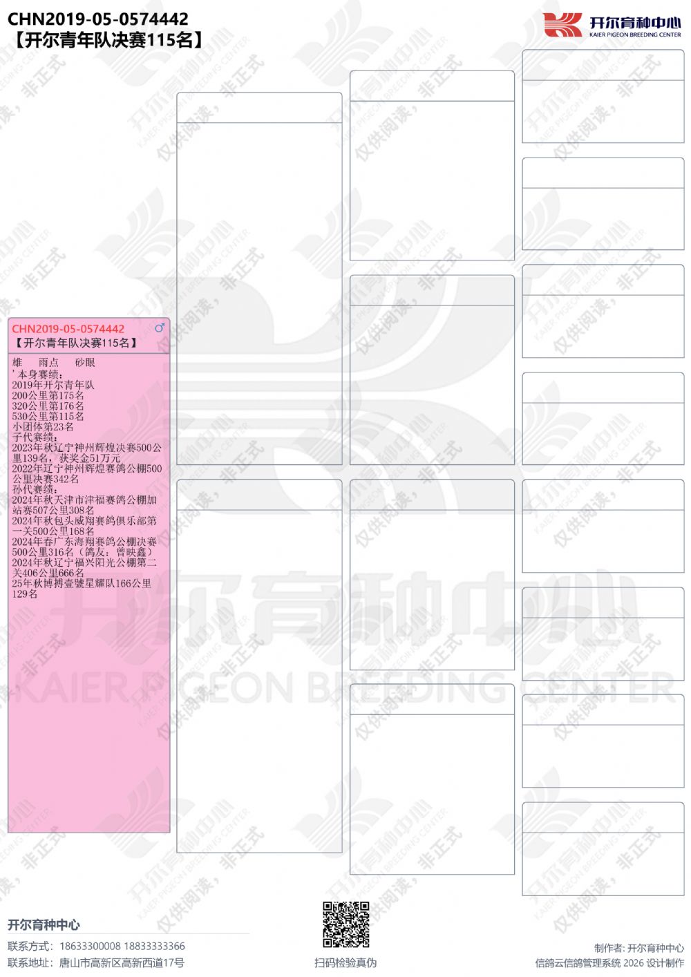 | 1652559 | 开尔爱心公棚大春棚决赛156名(雌鸽) | ¥8000元 | 7次 |
