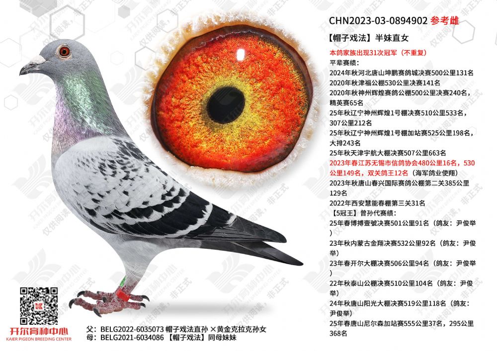 | 1652581 | 开尔爱心公棚小春棚预赛季军×奶酪240外孙女 | ¥3000元 | 1次 |
