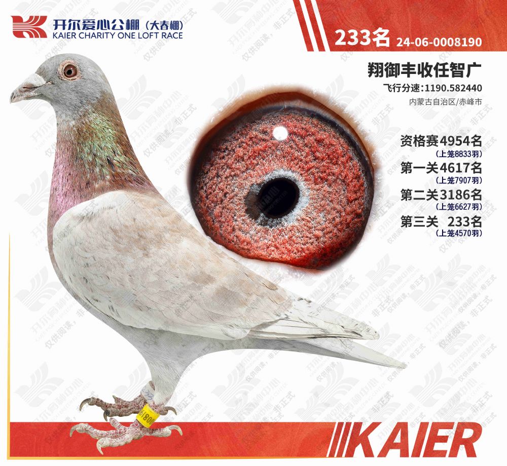 - 当前查看拍卖鸽:开尔爱心公棚大春棚决赛233名(雄鸽)
