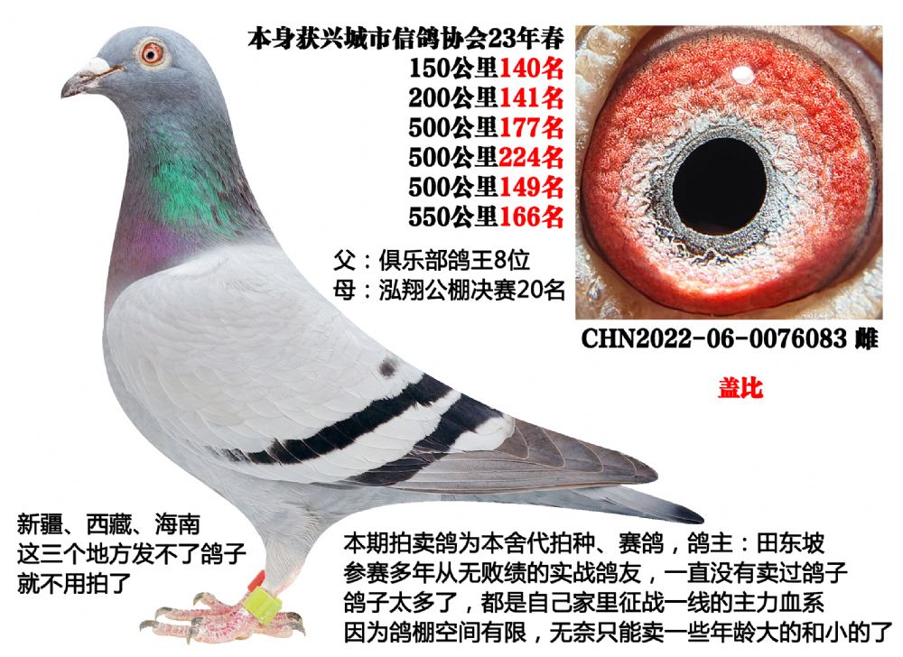 4、因为非商业鸽舍,所以没有血统书提供,拍卖鸽照片随鸽子一起发走,介意勿拍,以免后续发生不必要麻烦。