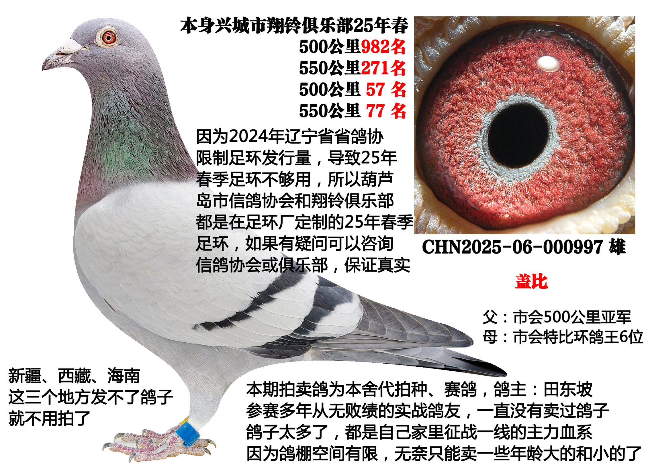 - 当前查看拍卖鸽:500公里总亚军X特比环鸽王6位(主血—