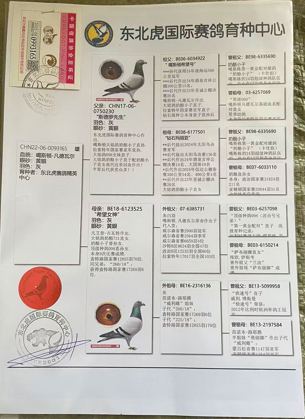 注明:5年以上的老鸽子更换环境有可能造成不能作育,请你谨慎出价;