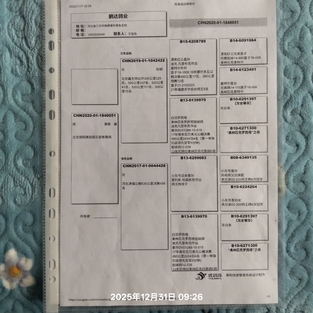 上传血统书随鸽发出 没有上传就是没有 介意勿拍!!!