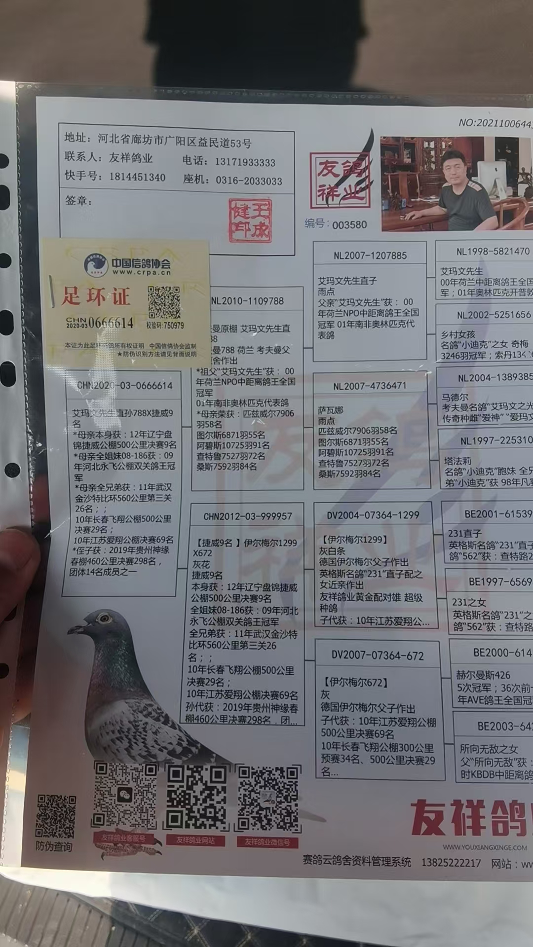 | 1652750 | 300公里31名子代获得翔冠公棚决赛亚军 | ¥300元 | 0次 |