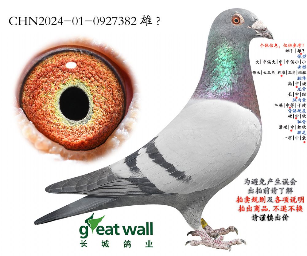 因拍卖鸽均是未做育过的种鸽或幼鸽,图内所标雌雄仅供参考,实际性别已实物为准。不做退换理由。