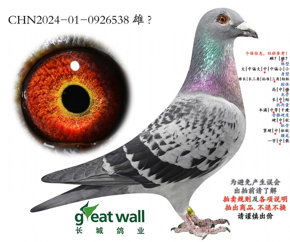 因拍卖鸽均是未做育过的种鸽或幼鸽,图内所标雌雄仅供参考,实际性别已实物为准。不做退换理由。