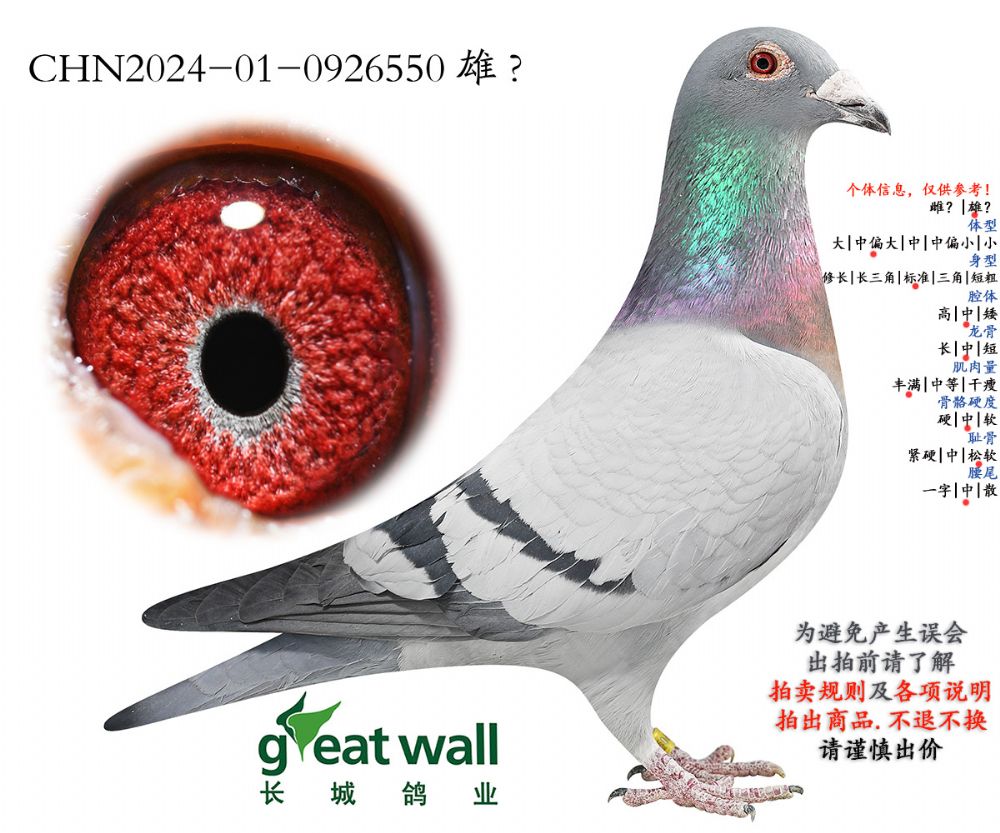 因拍卖鸽均是未做育过的种鸽或幼鸽,图内所标雌雄仅供参考,实际性别已实物为准。不做退换理由。