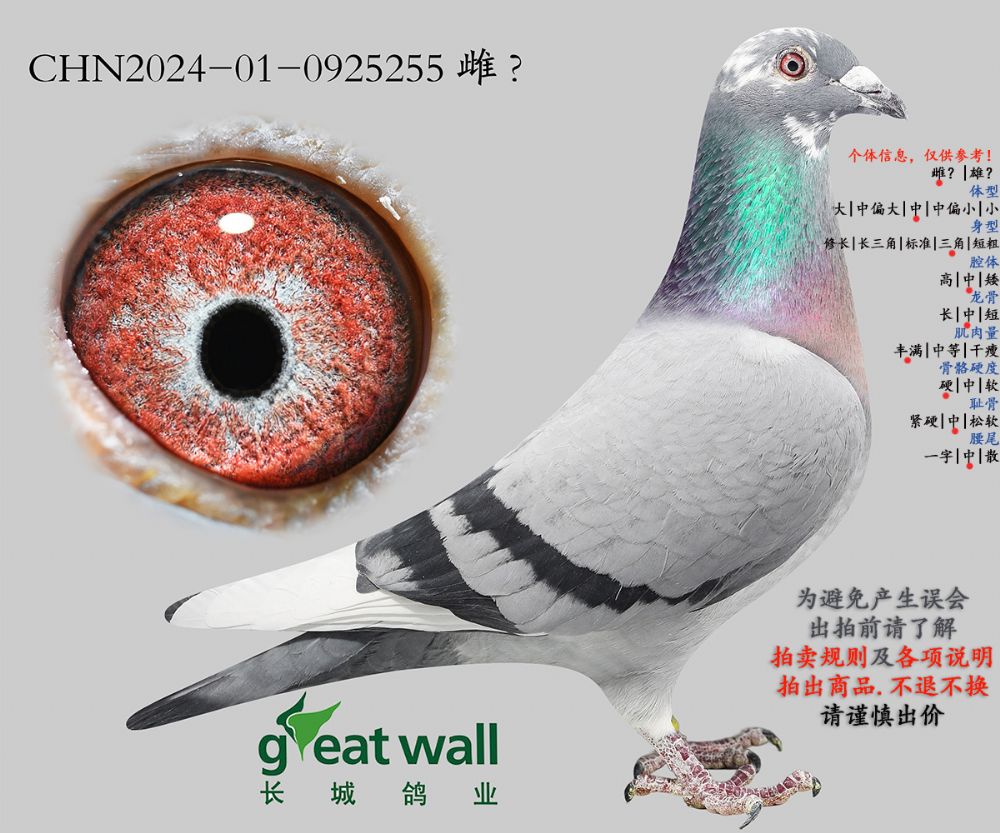 因拍卖鸽均是未做育过的种鸽或幼鸽,图内所标雌雄仅供参考,实际性别已实物为准。不做退换理由。