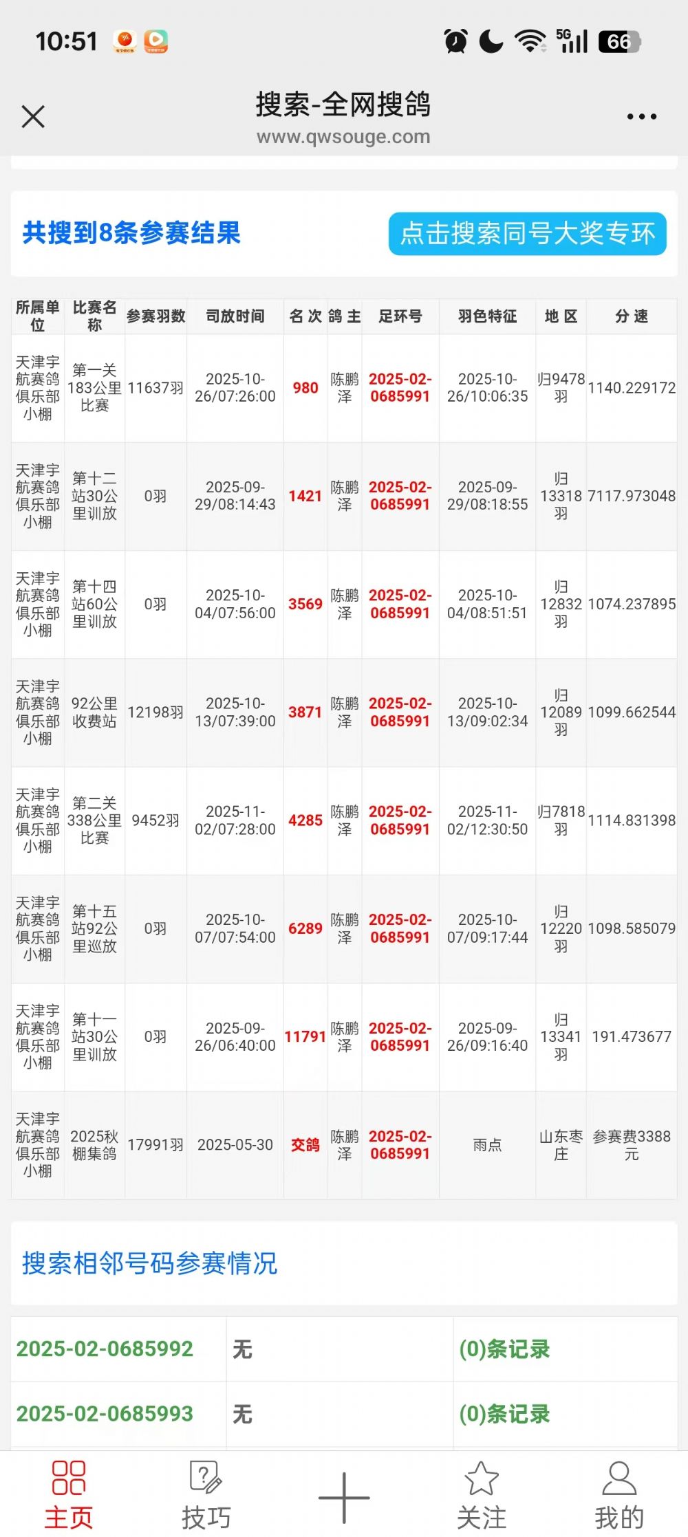 1652816 多羽奖鸽父西翁决赛11名配台湾强速红狐 ¥0元 0次